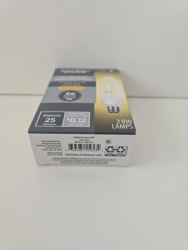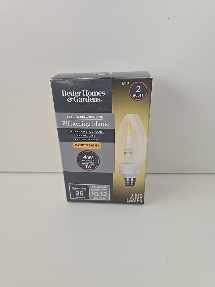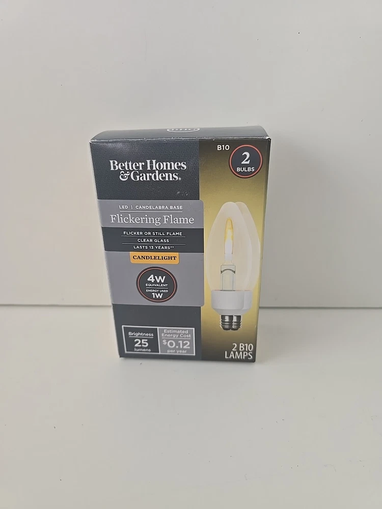 Flickering Flame LED Candelabra Base Flicker or Still Flame Clear Glass LASTS 13 YEARS 4W 2 bulbs B10 25 Lumens