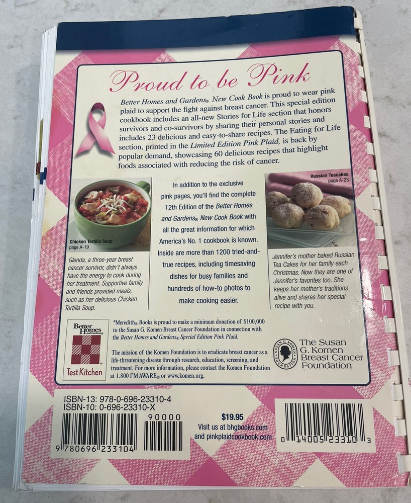 Better Homes & Gardens BHG Special Edition Cookbook Pink Ribbon....