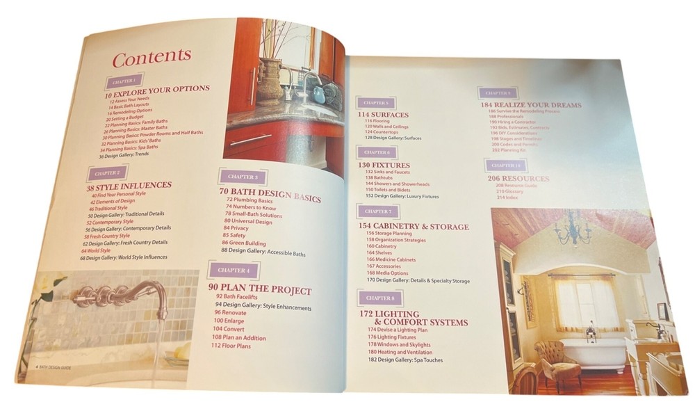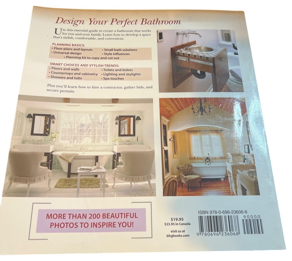 Transform your bathroom into a sanctuary with this comprehensive guide. Explore over 200 inspiring photographs, expert advice, and creative ideas to design the bath of your dreams. • Hardcover edition by Better Homes & Gardens • Features over 200 photos • Includes practical tips for bathroom design • ISBN 978-0-696-23096-8 • Measures approximately 10 x 10 inches Good condition, see photos