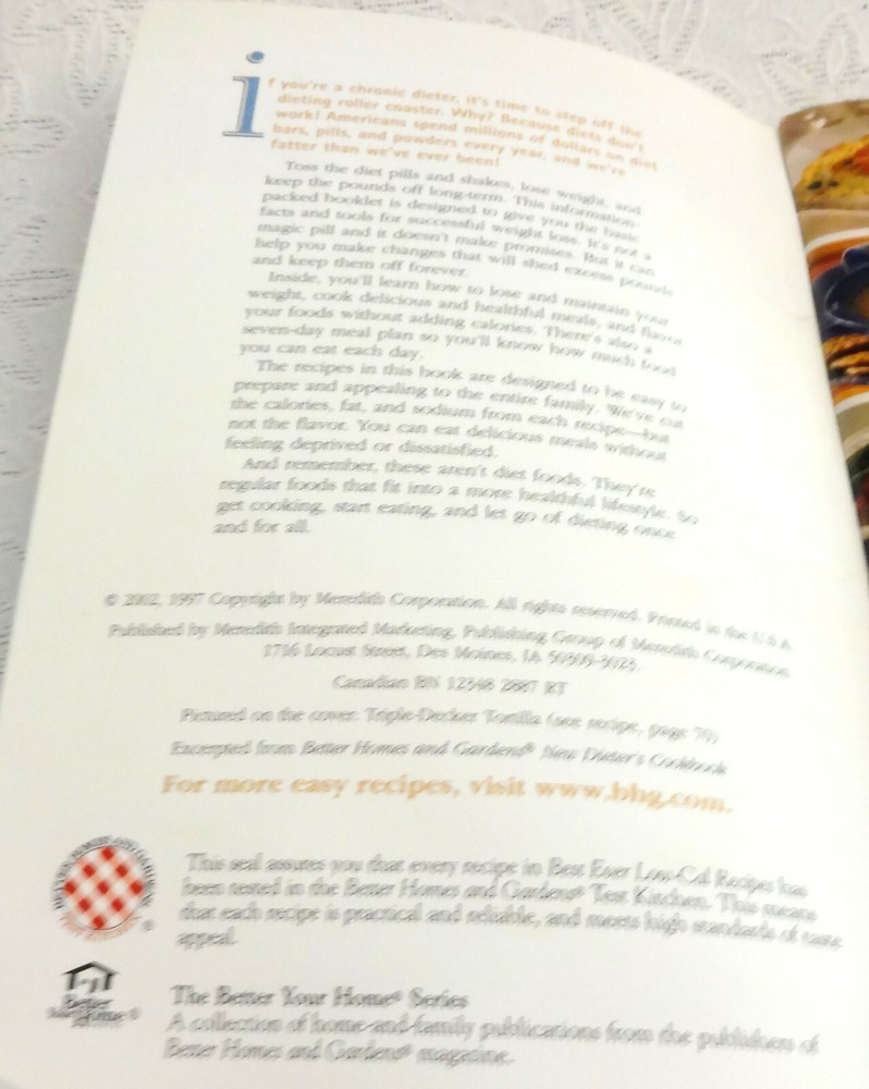Better Homes & Gardens Best Ever Low-Cal Recipes Eat & Lose Weight 100+ Ways To Win At Weight Loss Plus A Full Week Of Menus ©2002...