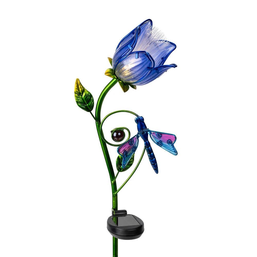 Light up your garden with the Better Homes & Gardens Solar LED Blue Hibiscus Glass Flower Stake Light Outdoor Décor! This blue hibiscus stake of durable construction is weather resistant. All the glass petals are fused under multiple temperature changes and hand-painted by experienced workers with vivid looks. The stake is knocked down into two pieces but can be easily assembled, and weighing only 0.8 lb. This Garden Stake type is powered by solar energy, the ABS solar panel gathers sunlight during the day and illuminates the flower for up to 8 hours at night. It is gorgeous in looking even without light. Plant one in your outdoor oasis and make sure the switch is at ON position. It can absolutely add a pop of color to your garden, patio, pathway, or driveway no matter what season it is. It is a wonderful gift to a green hand who loves nature, or to any green thumbs who spends a lot of time in their garden. Take a look and you will definitely love it! Better Homes & Gardens brand Solar LED Garden Stake type Blue Flower stake Illuminates for up to 8 hours 0.8 lb weight