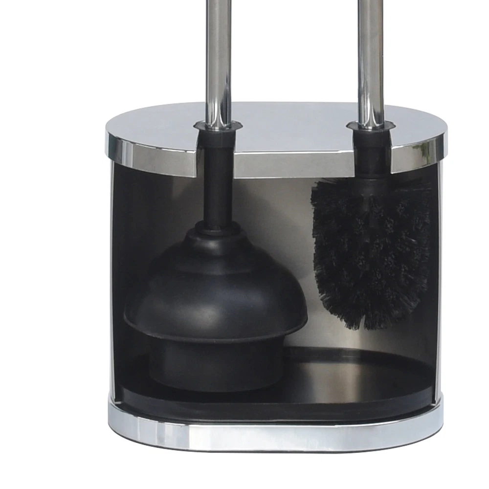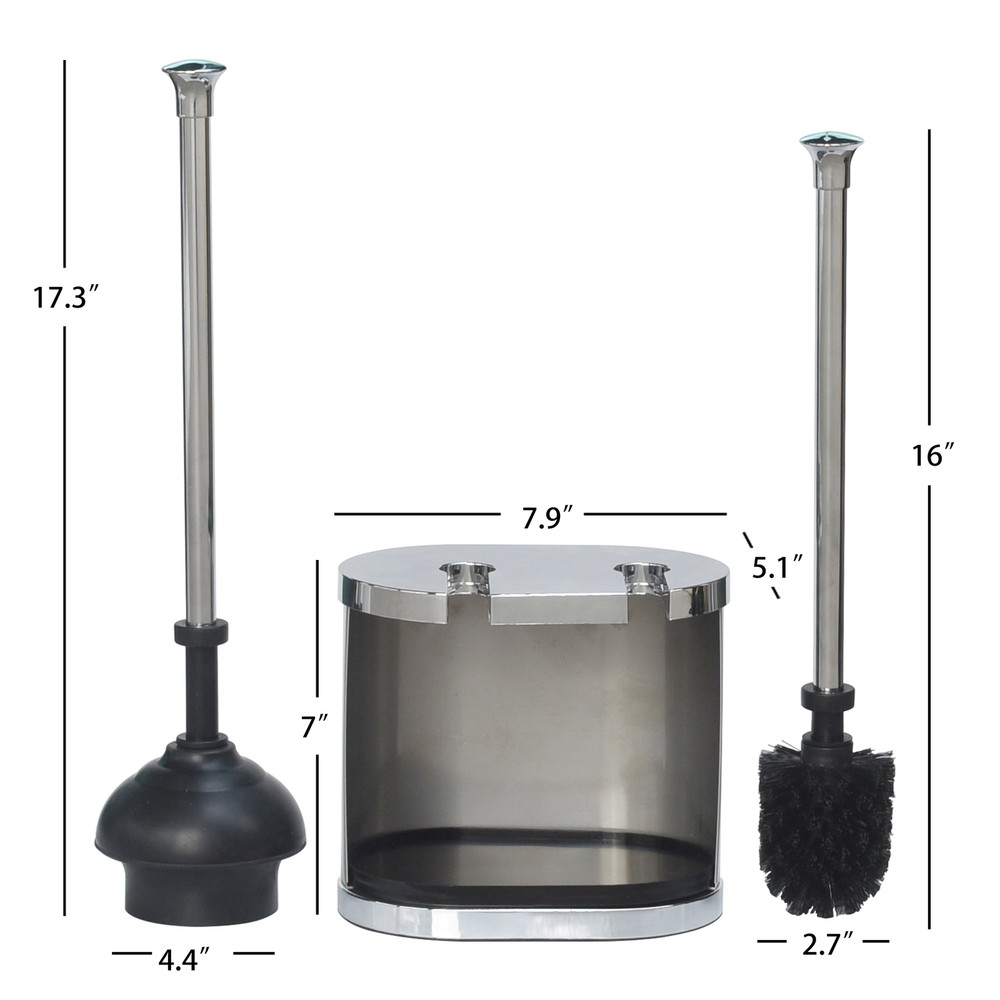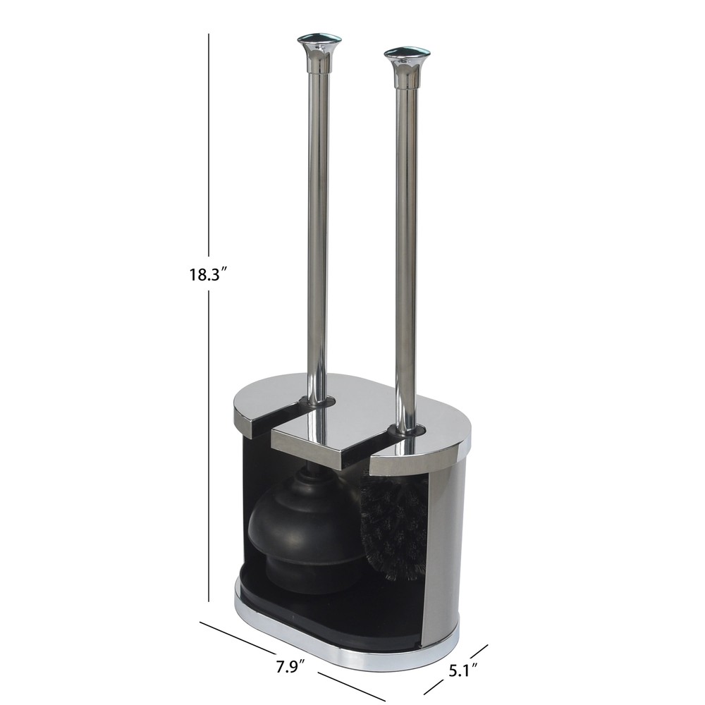 Better Homes & Gardens Bowl Brush and Plunger set open-back and suspended design helps wet toilet brush and plunger heads dry, reducing odors after bathroom maintenance Sturdy plastic and metal construction is a reliable and aesthetically pleasing addition to any bathroom Discretely store your toilet brush and plunger in this 2-in-1 stylish caddy Overall dimensions W 7.87" x D 5.12" x H 18.31" Wipe clean the canister and rinse and air dry brush and plunger Product details The Better Homes and Gardens Brushed Nickel Bowl Brush & Plunger Set is two items in one, it does double duty because it contains a toilet brush and a plunger. Smartly designed, compact and portable, the brushed nickel housing is accented by a rich chrome trim. One side is open to allow proper air circulation. It has a removable drip tray that will help collect water. The handles are perfectly sized to grip and get the job done. It fits nicely in a corner, behind bathroom garbage cans, trash baskets or placed near the back of toilet bowls. This set is also designed to mix and match with other Better Homes and Gardens two-tone brushed silver bathroom accessories. Wipe clean the canister and rinse and air dry brush and plunger. Better Homes & Gardens Bowl Brush and Plunger set open-back and suspended design helps wet toilet brush and plunger heads dry, reducing odors after bathroom maintenance Sturdy plastic and metal construction is a reliable and aesthetically pleasing addition to any bathroom Discretely store your toilet brush and plunger in this 2-in-1 stylish caddy Overall dimensions W 7.87" x D 5.12" x H 18.31" Wipe clean the canister and rinse and air dry brush and plunger On Jan 12, 2025 at 23:28:53 PST, seller added the following information: On May 22, 2025 at 18:15:45 PDT, seller added the following information: