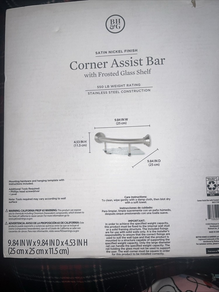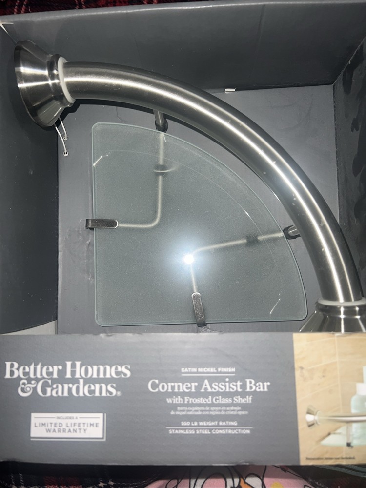 Better Homes & Gardens CORNER ASSIST BAR w/Frosted Glass Shelf~New in Box.