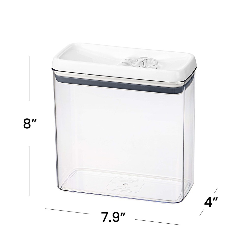 Keep your dry goods fresh with this Better Homes & Gardens Flip-Tite® Food Storage Containers. It is a handy item to have in your kitchen or pantry. These food storage containers are ideal for storing dry foods such as pasta, dried beans, and candies. It's made without Bisphenol A (BPA) to ensure the safety of your food. A clear storage container makes it easy to identify the stored contents at a glance without having to label each canister. It features an easy-to-open flip buckle lid with a food-grade safe seal and is made of durable construction. This container holds up to 11.1 cups of dry foods. Always wash before first use and remove the seal from the lid before wash. Allow all components to dry thoroughly before next use. The container and lid are dishwasher safe, the silicone seal is hand washed. Not Microwave safe. Do not carry Flip-Tite® Container by the lid. Better Homes & Gardens Flip-Tite® Rectangular 11.1 Cup Food Storage Container: Clear Food Storage Container with Easy Open Lid Stackable for Space Saving Storage BPA-Free Durable Material Dishwasher Safe This food storage container stores up to 11.1 cups of dry food