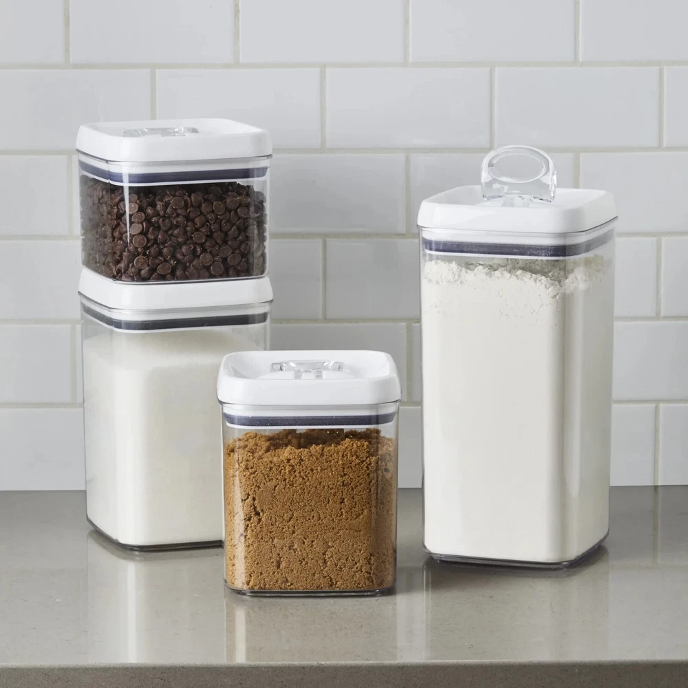 Better Homes & Gardens Canister - 16 Cup Flip-Tite Square Food Storage Container Features and further details Airtight Container with Easy-Open Lid Ideal for storing dried beans, lentils, and snacks Stackable for space saving organization Top rack dishwasher safe BPA Free Durable Material Do not carry the container by the lid Great for use in the garage, sewing room, and more