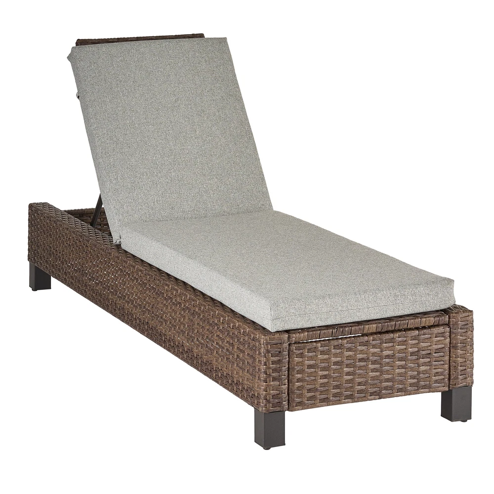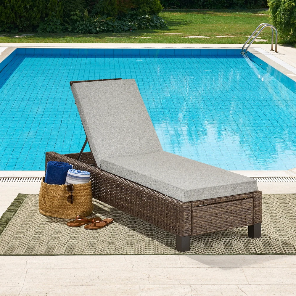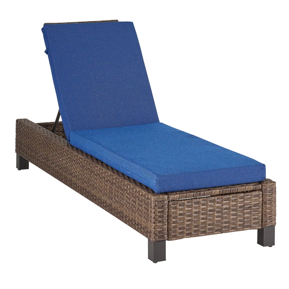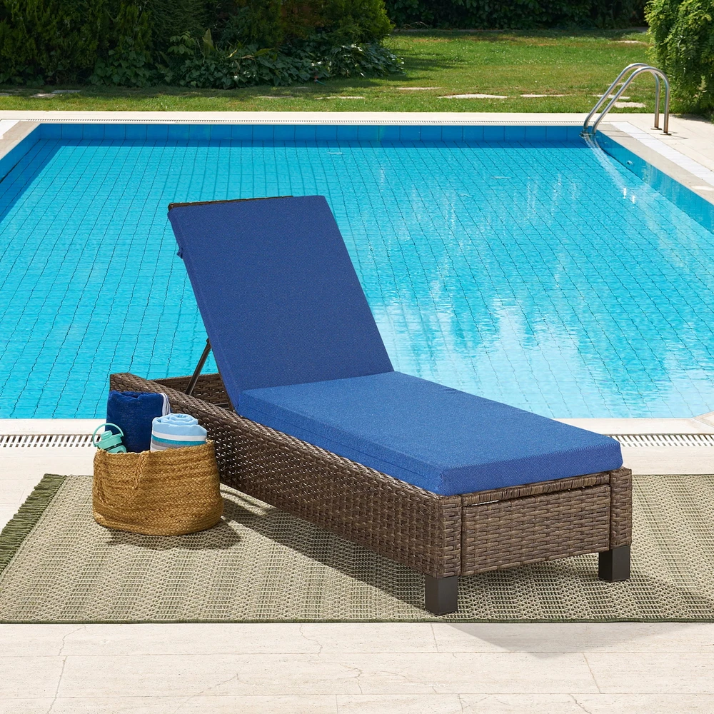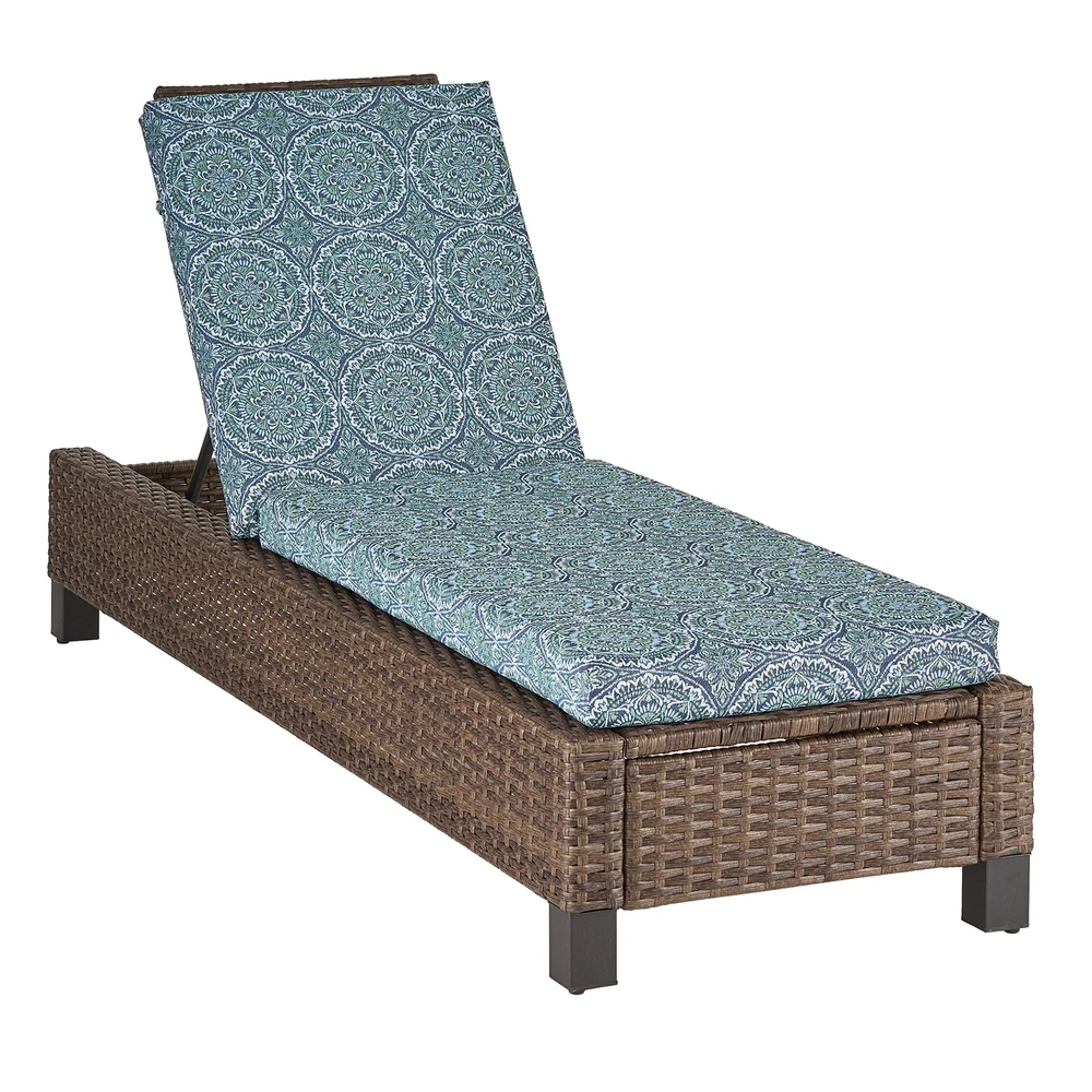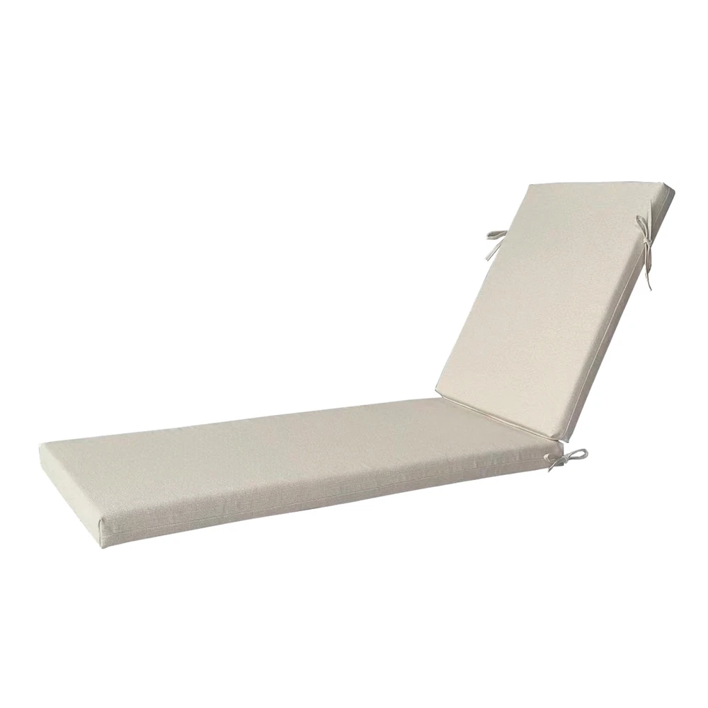Our Better Homes & Gardens premium chaise lounge chair replacement cushion features a durable foam core to add comfort, support, and style to outdoor furniture. The fade resistant 100% solution dyed polyester fabric is treated with 3M Scotchgard™ to resist fading, water, and stains. Designed to fit most chaise lounge chairs. This 2-piece set includes 1 seat cushion and 1 back cushion. Cushion ships vacuum-sealed with removable fabric cover to adjoin the 2 cushions together. 3-year limited warranty. Equipped with ties. Pictured with Brookbury Chaise Lounge Chair Universal dimensions to accommodate most chaise lounge chairs 72" L x 21" W x 3" H 3M Scotchgard™ treated fabric resists water and stains Superior fade resistant 100% solution dyed polyester fabric Premium cushion with durable foam core adds extra support and comfort Equipped with ties to keep cushion in place Clean fabric with mild soap and water and air dry After unpacking, allow 24-48 hours for vacuum-packed cushion to fully expand 3-year limited warranty IMPORTANT: measure carefully before ordering