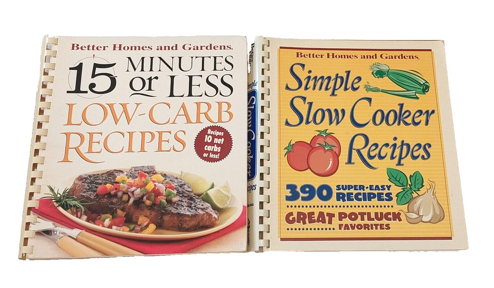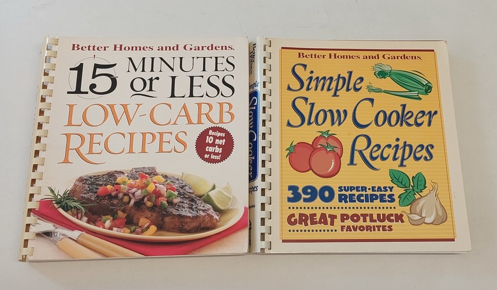 Two Better Homes & Gardens Cookbooks Simple Slow Cooker Recipes - 390 super easy recipes 15 Minutes or Less Low-Carb Recipes...