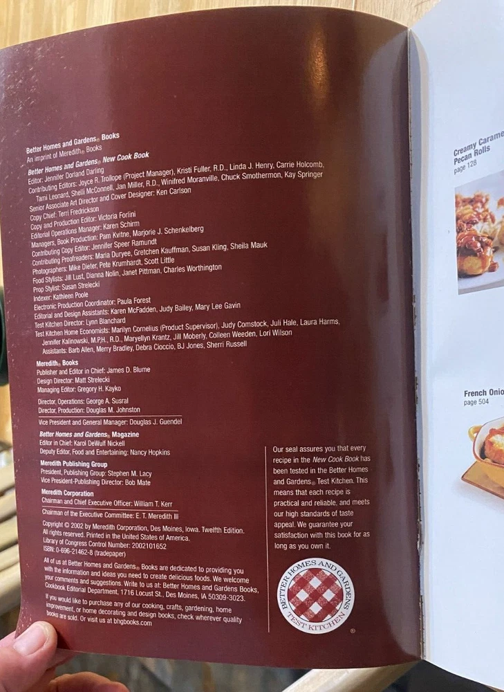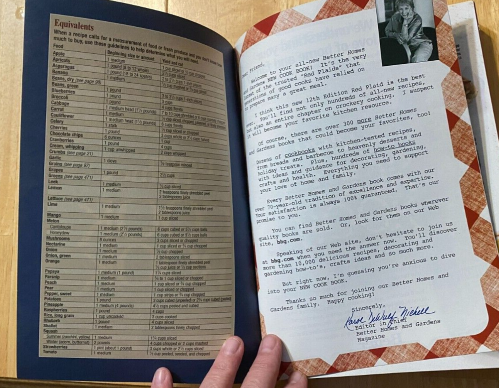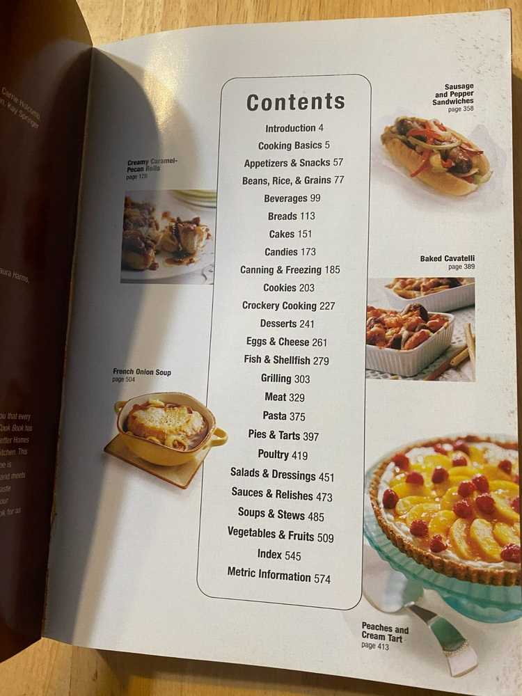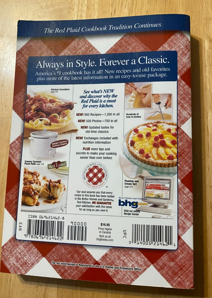 You are looking at a gently pre-owned cookbook titled New Better Homes & Gardens Cook Book, America's #1 Cookbook Since 1930. This book has nice slick pages and color photographs with 574 pages of recipes and cooking tips, etc. This measurs about 9 1/8" x about 6 7/16" x about 1" thick. If you have any questions please contact me and thank you for looking. (12D-22p6)2lb4o
