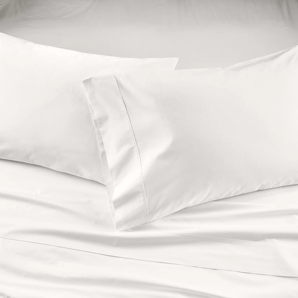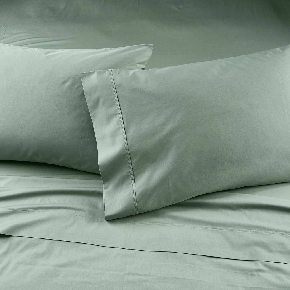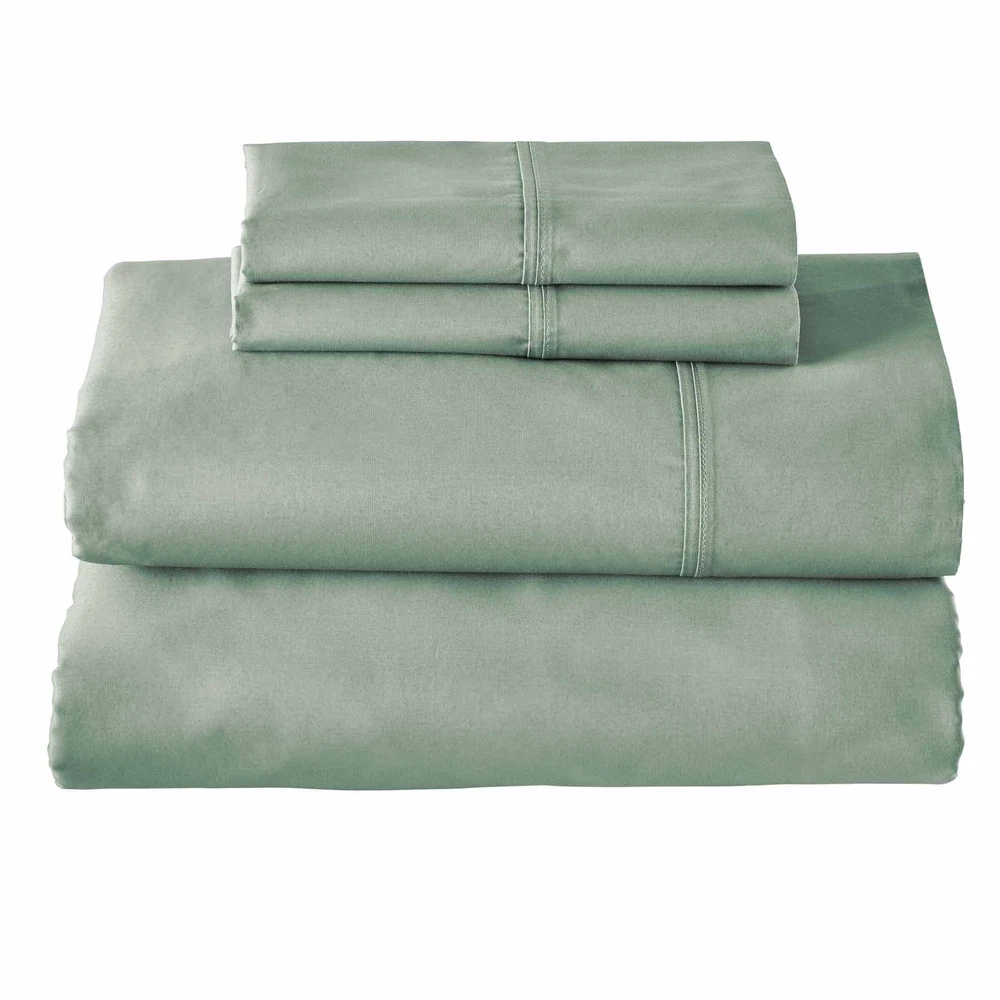 The ultra-soft Better Homes & Gardens Cool & Crisp 3-Piece 300 Thread Count Cotton Percale Sheet Set creates a soothing setting for a relaxing sleep. This twin-sized bed sheet set includes 1 flat sheet, 1 fitted sheet, and 1 pillowcase. It features a timeless, solid pattern in a classic color for fashionable style that fits all seasons and occasions. Crafted with lightweight, breathable, 100% cotton fabric in a 300-thread-count, percale weave, this sheet set is extra-soft and cool for comfort and strong enough for everyday use. It’s machine washable for easy care and remains crisp wash after wash. This lovely sheet set complements any bedroom furnishings and makes a great housewarming gift. Understated style, comforting softness, and long-lasting durability combine to make the Better Homes & Gardens Cool & Crisp 3-Piece 300 Thread Count Cotton Percale Sheet Set the ideal answer to all your bedding needs. Better Homes & Gardens Cool & Crisp 3-Piece 300 Thread Count Green River Cotton Percale Sheet Set, Twin Ultra-soft, lightweight bed sheet set creates soothing setting for relaxing sleep Twin-sized bedding set includes 1 flat sheet, 1 fitted sheet, and 1 pillowcase Available in multiple colors and patterns Crafted in a breathable, 300-thread-count, percale weave for long-lasting durability Extra-soft and cool for comfort and strong enough for everyday use Fashionable style complements any bedroom furnishings and fits all seasons and occasions Makes a great housewarming gift Features Optifit Technology to fit mattresses 9"–18" deep Oeko-Tex Made in Green certified Material: 100% cotton Care: Wash separately before use, machine wash warm with like colors, do not bleach, tumble dry low, remove promptly, iron on medium heat when needed, do not iron elastic portion of fitted sheet