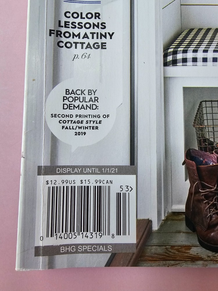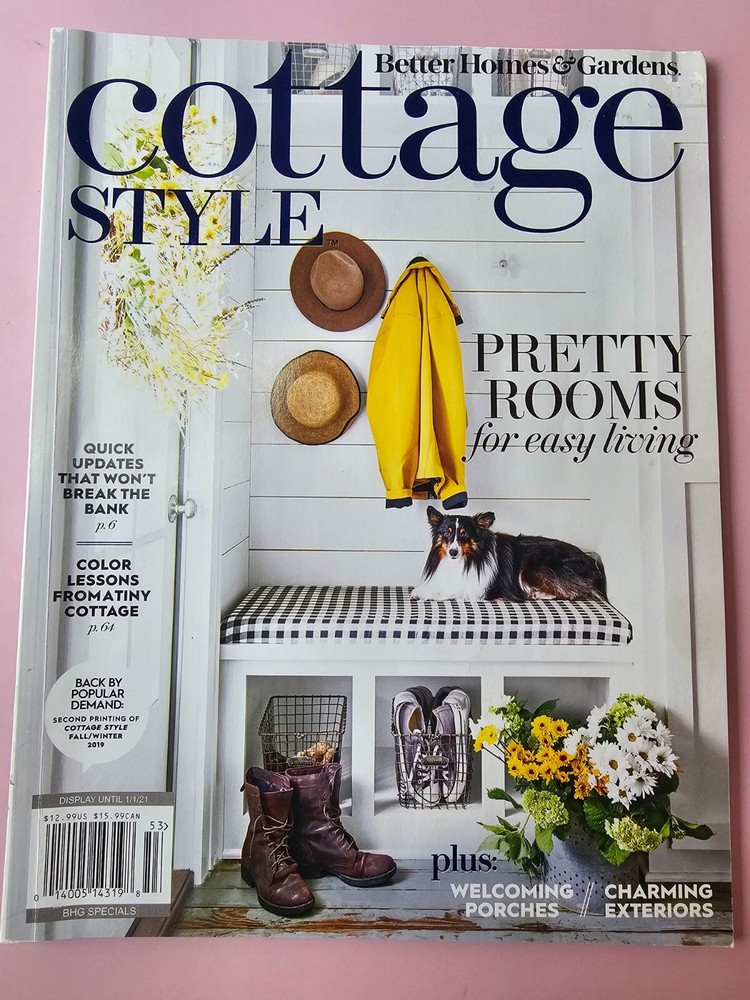 Better Homes & Gardens Cottage Style Fall/Winter 2020 PLEASE EXAMINE PHOTOS AS THEY ARE THE MAJOR PART OF OUR DESCRIPTION. If you have any questions please send them our way. Enlarge photos by clicking on them in the main window. Condition: A good copy from my own collection. Some scuffs and scrapes from shelf wear. I attempt to charge what the item will cost to ship without my packaging costs, but it includes tracking and insurance. WE COMBINE FOR SHIPPING. PLEASE ASK QUESTIONS. Please look at all the photos as they are part of the description. ENLARGE PHOTOS FOR DETAILS Ask questions if you have them. We do offer returns, but really want you to bid ONLY if you want this item, and not to just check it out and return it. Thanks for understanding . RETURNS: MUST BE IN ORIGINAL CONDITION for you to have a refund. It's hard to know what all to mention or even look for in vintage and antique pieces, as you might be searching for something I never noticed or thought of! Feel free to ask questions too! We try very hard to point out imperfections , but sometimes you just have to search the photos for yourself. The charm and patina these items have gained over the years and the stories they tell are part of their charm! Please remember that vintage and antique items are treasure that have been lived with and loved for generations and will show signs of love and use. They may also have minor imperfections from all that love, use and time. Please don't expect these items to be perfect. Smoke free home , but not pet free . Check back often, we're always shopping estate sales.
