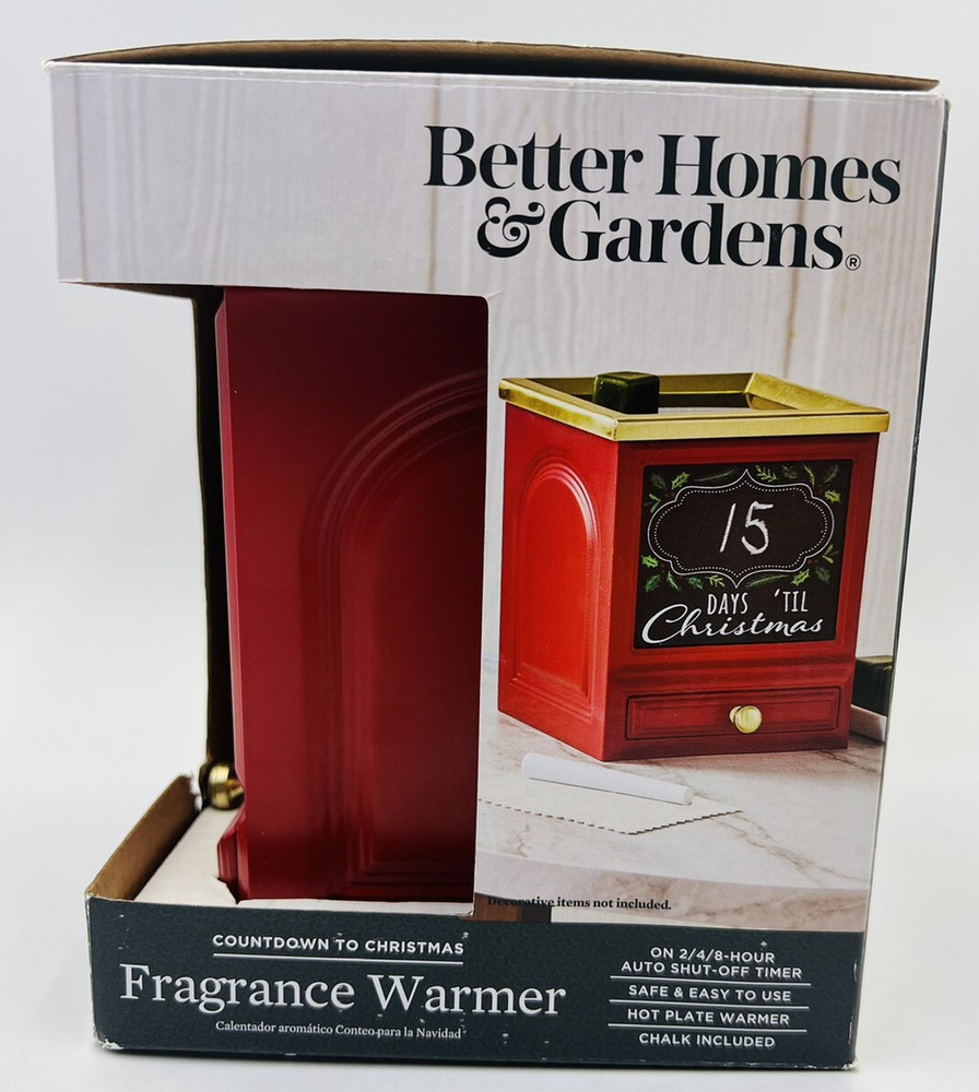 NEW Better Homes & Gardens Countdown to Christmas Fragrance Warmer (Red). Does not include wax melts. The front of the box/packaging has some damage. Photos included for reference. Thank you!...