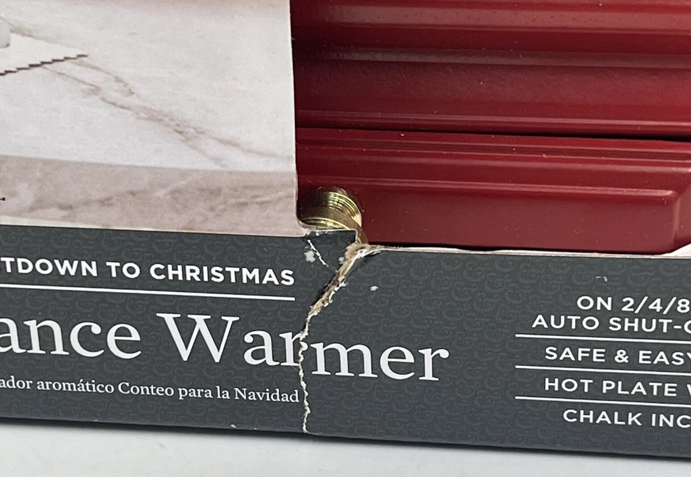 NEW Better Homes & Gardens Countdown to Christmas Fragrance Warmer (Red). Does not include wax melts. The front of the box/packaging has some damage. Photos included for reference. Thank you!