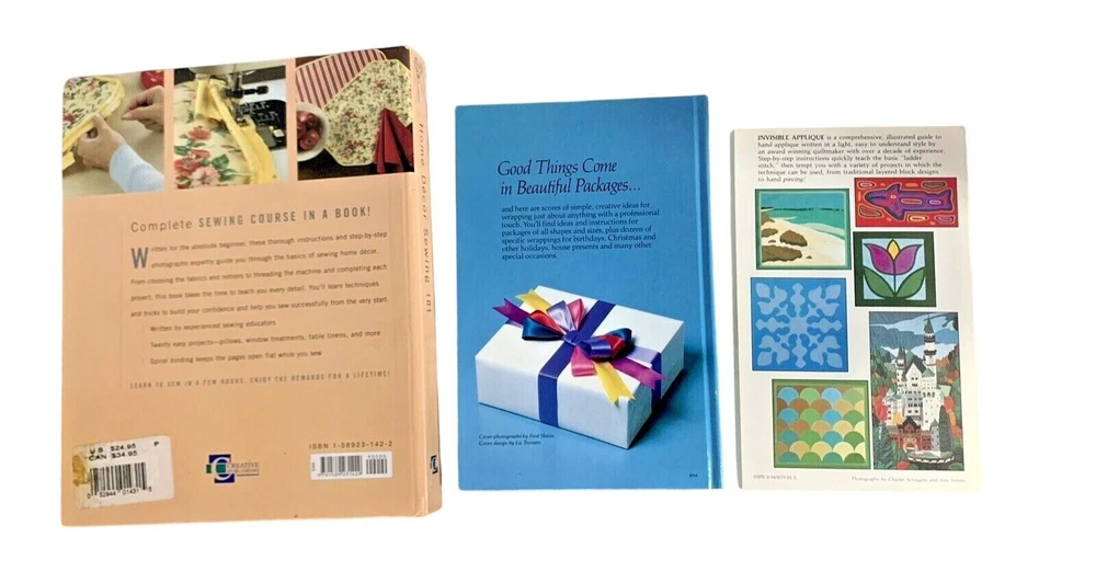 This craft book collection is like a Swiss Army knife for your DIY projects. Whether you're stitching, wrapping, or cross-stitching, these books will have you crafting like a pro. Just make sure your scissors are as sharp as your wit. • Includes 9 different craft books • Topics: Sewing, applique, gift wraps, and more • Perfect for home crafting enthusiasts • Various authors & editors • Published by Better Homes & Gardens & others Features: • I Strive to Ship Next Day • Feel Free to Look Through My Other Listings • Please contact me with any issues. I will always do my best to solve any problems that may come up! • Please refer to all photos above for a better visual description of the product being offered and its condition. • Any props that are used in the taking of the photos are not included. Only the item/items in the title of the listings are being sold. Condition: Pre-Owned Good Good Condition. Everything you see in the photos is what you will get. Please refer to all photos for a better understanding of the condition. RETURN POLICY. We want you to be happy with your item! If you receive your item and it doesn't fit, or is not what you wanted, all we ask is that you return it within 30 days, in the condition we sent it to you in.. If you have any questions or concerns, message me.