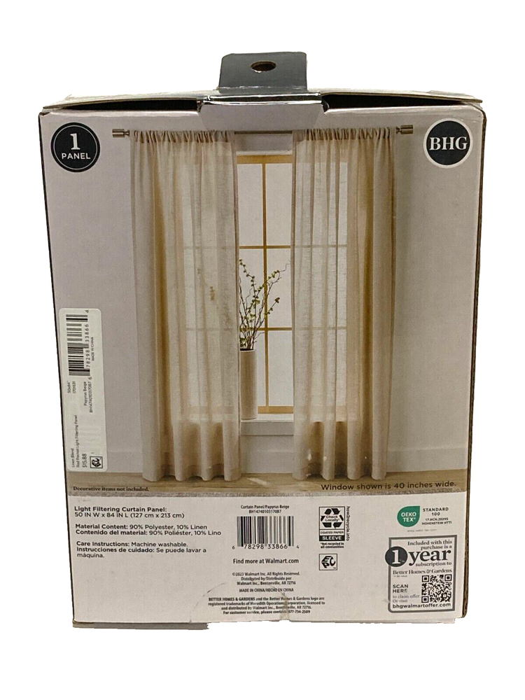 Better Homes & Gardens Curtain Panel Beige Linen Light Filtering, 50W x 84L Color - Papyrus Beige 50" Wide x 84 " Long One Panel At GoodBye Retail, we take pride in delivering your orders promptly and efficiently. Please review the following shipping details to ensure a seamless shopping experience: Order Processing: Orders are processed and shipped within 24 business hours of your purchase. If your order is placed before 1 PM EST Monday through Friday, it will be shipped on the same day. Orders placed after 1 PM EST will be shipped the following business day. For orders made during the weekend (Saturday/Sunday), they will be shipped on the following Monday, excluding federal holidays. Shipping Options: We offer up to three (3) shipping options for most orders within the U.S.: Economy Shipping: This option allows the courier a maximum of 10 full business days for delivery. Standard Shipping: Typically, this method takes between 3-7 business days for delivery. Expedited Shipping: For those in a hurry, expedited shipping usually takes between 2-5 business days (this is not overnight shipping). Please select your preferred shipping method during the checkout process. Be mindful that once your order is placed, we are unable to modify the chosen shipping method. Delivery Estimates: While eBay provides estimated delivery dates, please note that these are approximations. Delays can occur due to factors beyond our control, such as extreme weather conditions, natural disasters, and peak seasonal demand. Shipping Carriers: To ensure the safe and efficient delivery of your orders, we utilize reputable carriers, including UPS Mail Innovations, FedEx Ground and SmartPost, and USPS. The choice of carrier is determined by the package's size and weight. For your convenience, please be aware that both UPS Mail Innovations and FedEx SmartPost handle the transportation of packages to your local USPS for final delivery. Rest assured, we dispatch all orders within 24 business hours. Tracking information may take up to 72 hours to be uploaded and synchronized between eBay and the courier's website. We appreciate your patience during this process. Signature Confirmation: For orders valued at more than $150, we include signature confirmation as an extra layer of security to ensure your package is delivered safely. Shipping Address: Once an order is placed, we regret that we cannot alter the shipping address. We strongly recommend verifying that your preferred shipping address is accurate before finalizing your purchase during checkout. At GoodBye Retail, your satisfaction is our priority. If you have any inquiries or require further assistance with your order, please do not hesitate to contact our dedicated customer support team. Before leaving negative feedback, we kindly request that you contact us. Our team is committed to resolving any issues with your order to ensure you have a positive shopping experience with us. Thank you for choosing GoodBye Retail. We appreciate your trust in us for your shopping needs.