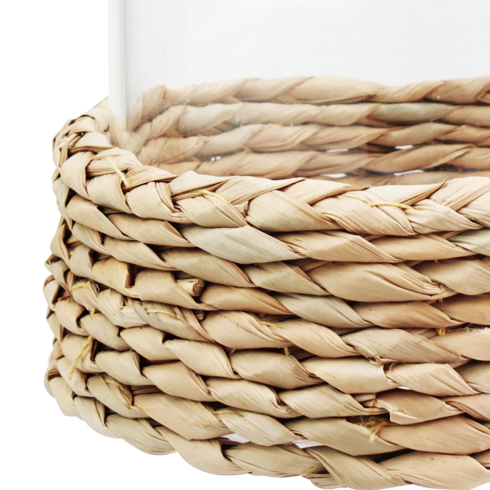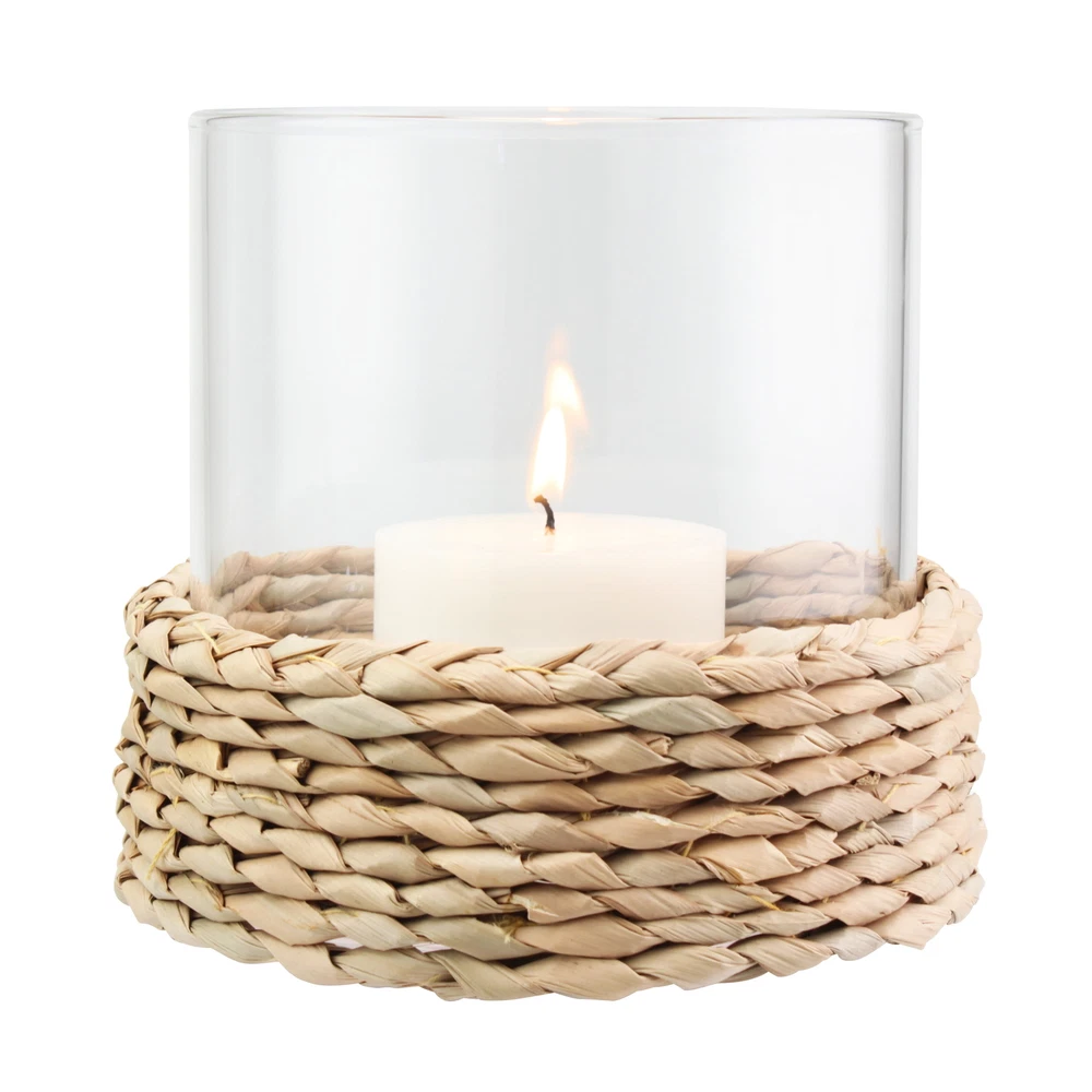 Add some sparkle to your space with the Water Hyacinth Hurricane Pillar Candle Holder. Perfect for small to medium-sized pillar candles, this decorative piece has an effortless, airy look and feel that softens existing decor. The candle holder features a hurricane-style glass container with a gold hyacinth woven reed insert. Use it as a home decor accent or as a perfect gift for friends and family. Glass Hurricane Container The candle holder blends in with almost any interior style Holds small to medium-sized candles The base features a brown hyacinth woven reed detail