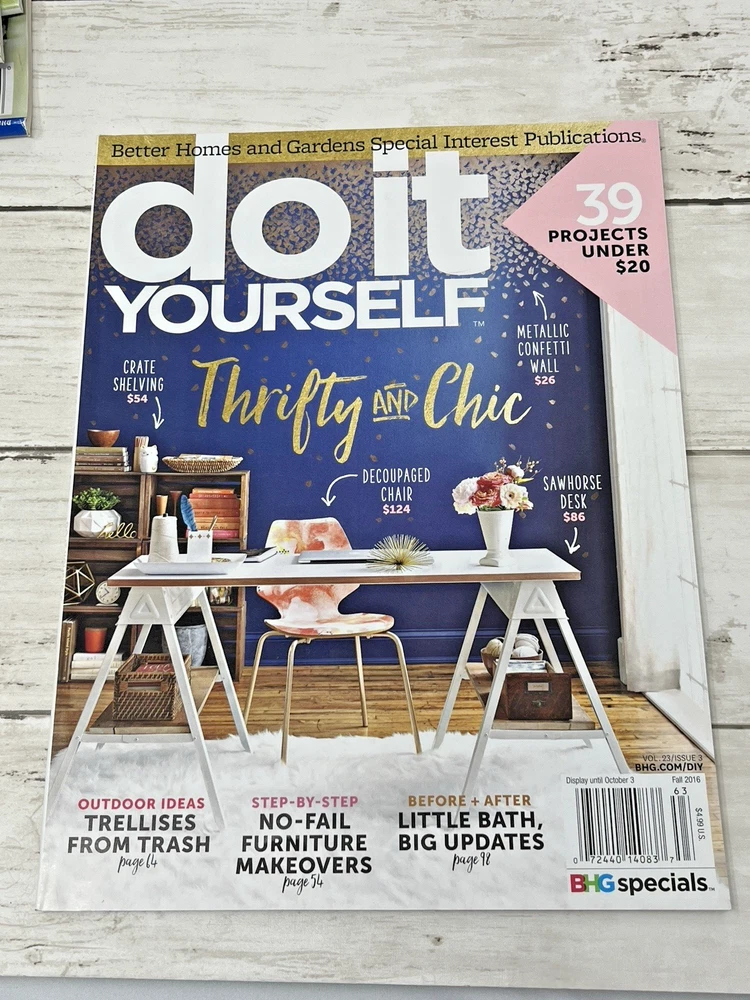 Here are 11 issues of Do It Yourself and 3 of Make It Yourself - both Better Homes and Gardens publications. From a smoke and pet free home. I do not accept returns unless I have misrepresented the item in the description. . Issues included: Do It Yourself 2006 Fall 2012 Winter 2013 Spring and Summer 2015 Spring and Fall 2016 Summer, Fall and Winter 2017 Summer and Fall Make It Yourself 2014 Fall/Winter 2016 Fall/Winter 2017 Spring/Summer