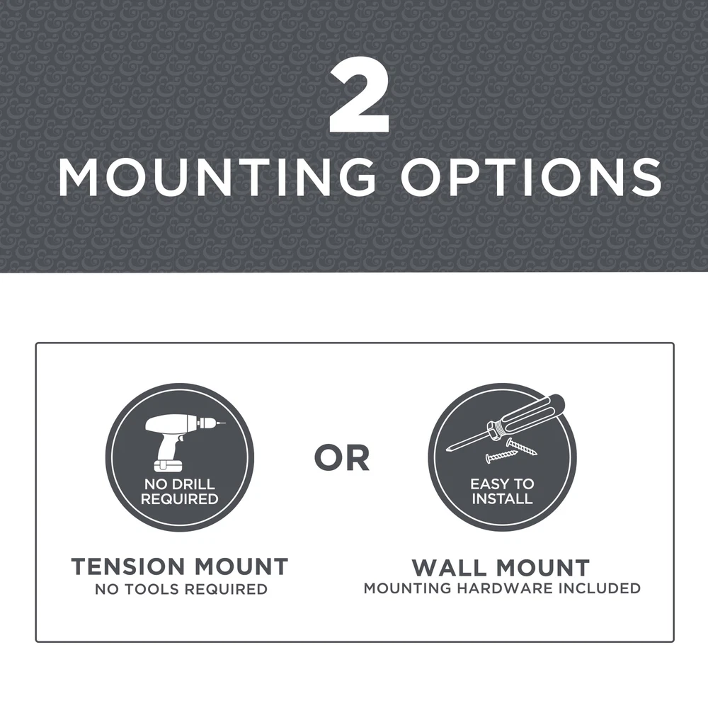 Enjoy the benefits of increased elbow space inside your shower with the Better Homes & Gardens Dual Mount No Rust 50” to 72” Adjustable Curved Shower Curtain Rod in brushed nickel. This adjustable shower rod has a curved design that helps make your shower space feel larger. The 1-inch diameter rod extends from 50 to 72 inches to fit most shower spaces and bathtubs, and its 2-way mounting make installation easy. Use the included hardware for permanent wall-mount installation, or choose tool-free tension installation, with no drilling and no damage to your walls. The curved rod has a stylish brushed nickel finish to complement your bathroom decor or hardware. Better Homes & Gardens 50" to 72" Curved Shower Curtain Rod, in brushed nickel Curved design adds more space inside your shower Choice of 2 secure mounting options: Tool-free tension mount or permanent wall-mount installation (includes hardware) Curved shower rod adjusts from 50 in. up to 72 in. to fit most shower spaces Durable rustproof aluminum construction with a 1 in. diameter Fits standard hooks (diameter larger than 1.1 in) Attractive brushed nickel finish Easy installation using either method, with instructions included To simplify installation even more, use free BILT 3D interactive instructions on your mobile device to help you install this quickly, efficiently and with confidence that you did it right; download the free BILT app on any mobile device; scan the QR code above to get started, or view the video on this page to learn more