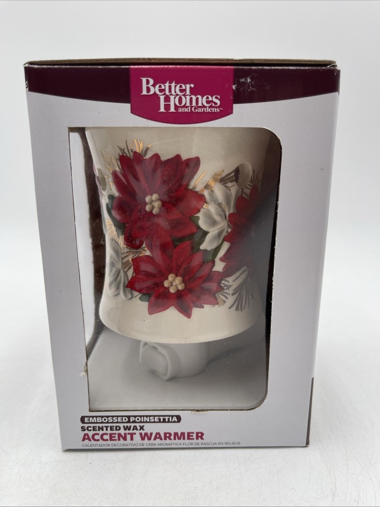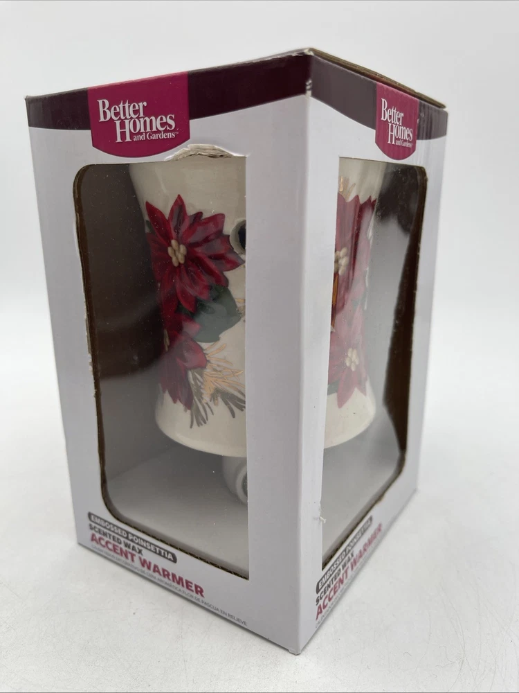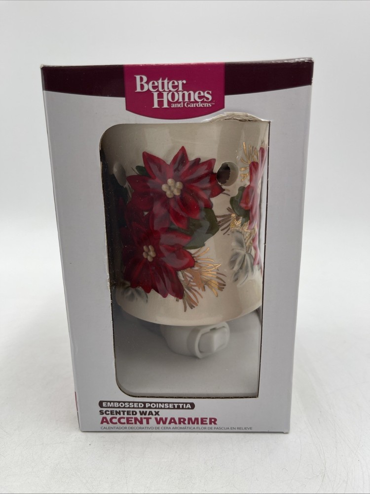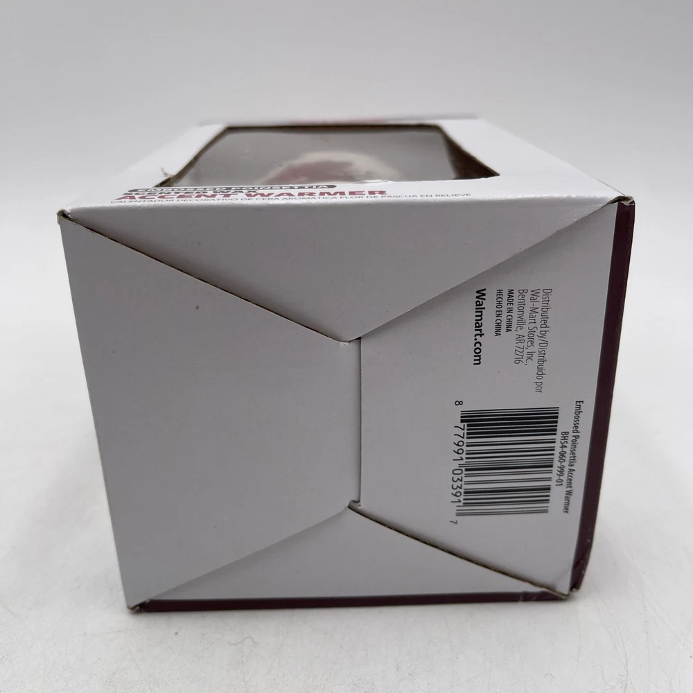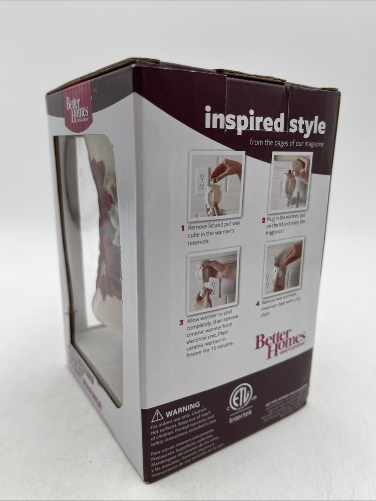 Add a warm, festive touch to any room with the Better Homes & Gardens Embossed Poinsettia Scented Wax Warmer. This glossy, large ceramic warmer features a beautiful poinsettia pattern and is designed to be a wall plug-in for easy use. The wax melts are designed to be used in any room and are perfect for aromatherapy. This wax warmer is a great addition to your home decor, it's perfect for the holiday season and will help to eliminate odors while adding a cozy, warm scent to your space. The warmer is multicolor and has a diameter of 4.5 inches and a height of 5.5 inches. It weighs 1 lb. 14 oz. and is made in China. Get into the holiday spirit with this Better Homes & Gardens Embossed Poinsettia Scented Wax Warmer.