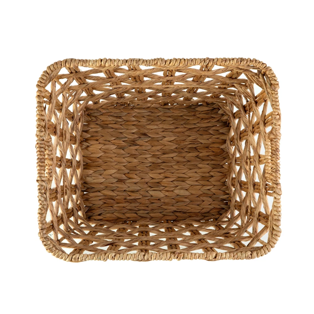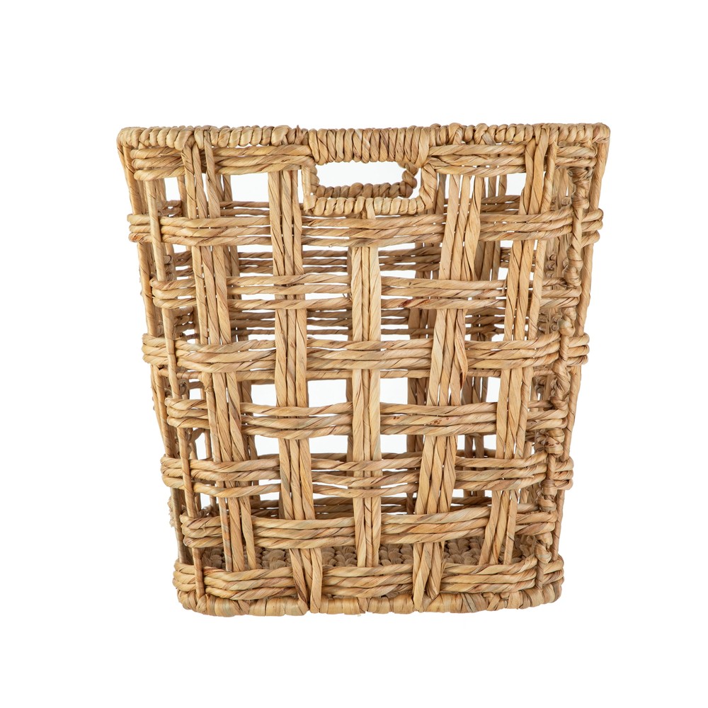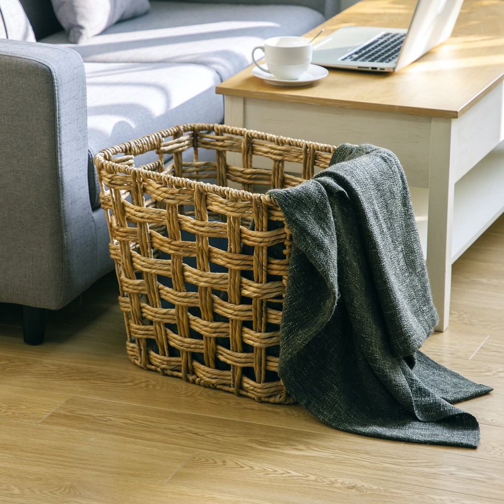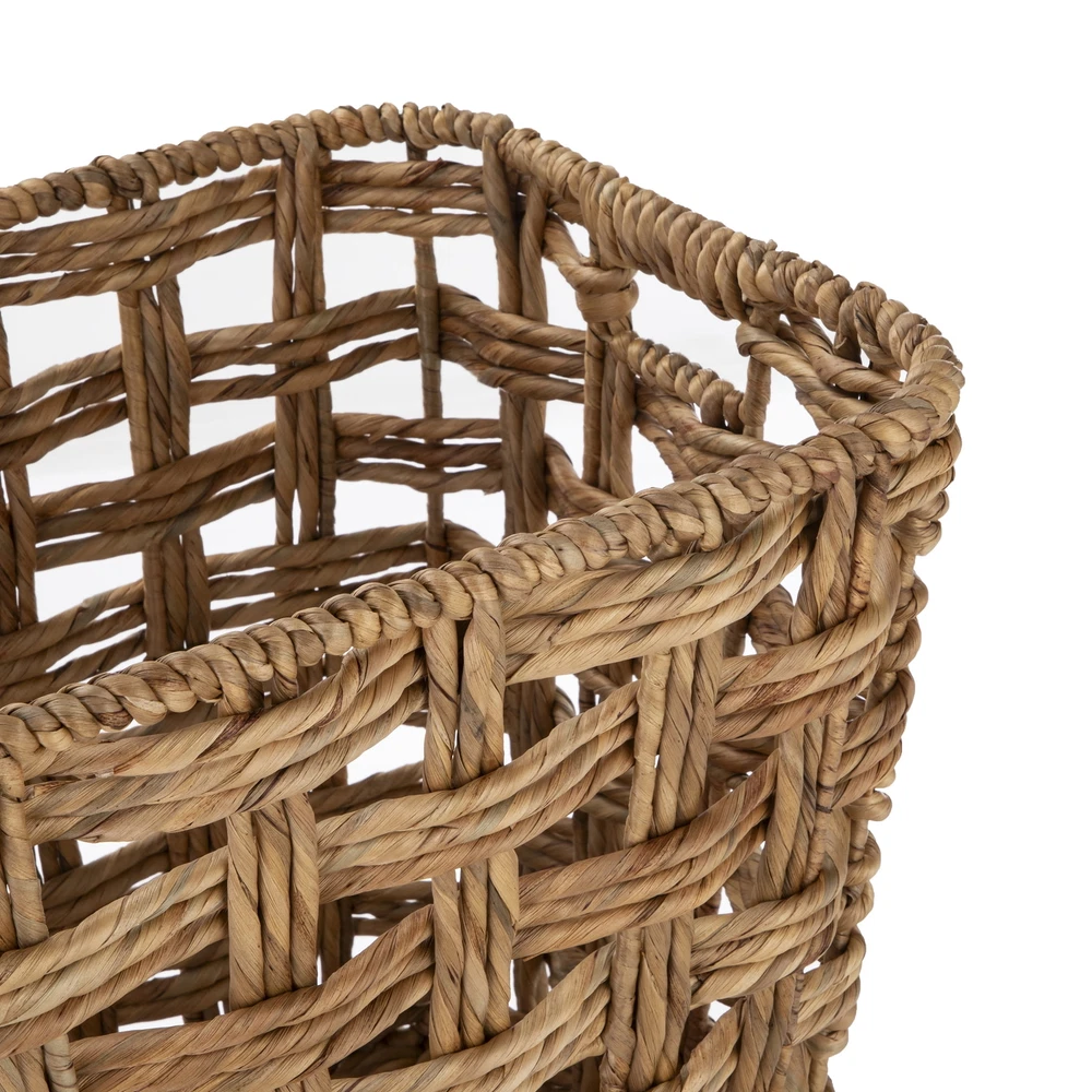 WATER HYACINTH BASKET Better Homes & Gardens Natural XLarge Twisted Water Hyacinth Storage Basket Better Homes & Gardens XLarge Storage Basket with Handles, Natural perfect for any space. The storage basket features a natural water hyacinth material wrapped around a sturdy iron frame. This basket is also designed with two reliable cut-out handles to make carrying and transporting stored items easy. RENEWABLE MATERIALS. Variances in water hyacinth color may be apparent due to product being handcrafted using a natural material. Better Homes & Gardens Natural XLarge Twisted Water Hyacinth Storage Basket Cut-out handles for convenient transportation Durable water hyacinth construction Ideal for organizing magazines, books, toiletries, and more Neutral color scheme accommodates any personal style. Transport this lightweight basket with ease Basket measures 19"W x 16"D x 16"H Wipe with dry cloth to clean RENEWABLE MATERIALS. Variances in water hyacinth color may be apparent due to product being handcrafted using a natural material.