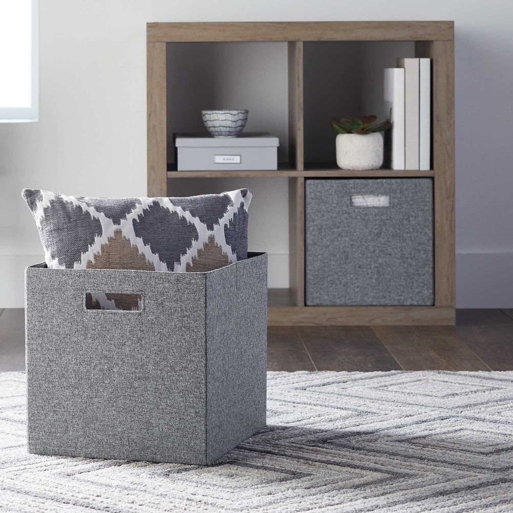 These Better Homes and Gardens Cube Storage Bins are a versatile and indispensable item for your home, office or small business. You can use them to store documents, files, toys, , supplies, small equipment, kids to adult clothes and much more. This storage bin measures 12.75" x 12.75" x 15" with two handles to make it easy to carry and transport them. With a variety of colors to choose from, you'll be able to perfectly match your home decor when you get organized with our Better Homes & Gardens Fabric Cube Storage Bins. Includes 2 storage cubes Ideal for storing books or kids and adult clothing in the bedroom, living room, laundry room or dorm rooms Can be used with our Better Homes & Gardens cube organizers (sold separately) or independently Folds flat for storage when not in use Dimensions of storage bin: 12.75" Wide x 12.75" Height x 15" Deep