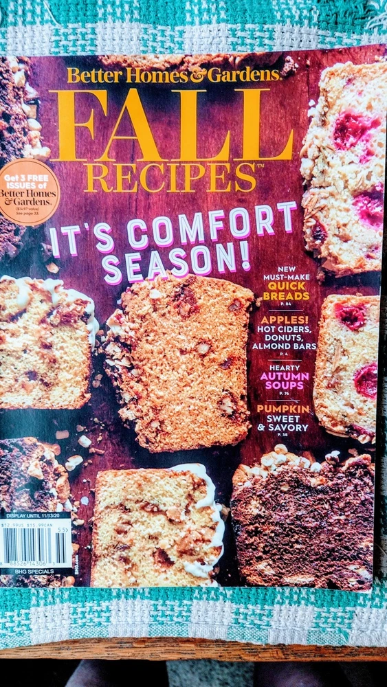 Autumn Harvest Recipes from Better Homes & Gardens fall recipes It's Comfort Season 2020. This special issue magazine features a variety of recipes that are perfect for the cooler months. From apple cider to pumpkin pie, these recipes are sure to satisfy. This collector's edition magazine also includes tips on entertaining, decorating, and gardening. With beautiful illustrations and easy-to-follow instructions, this magazine is a must-have for anyone who loves to cook and entertain.