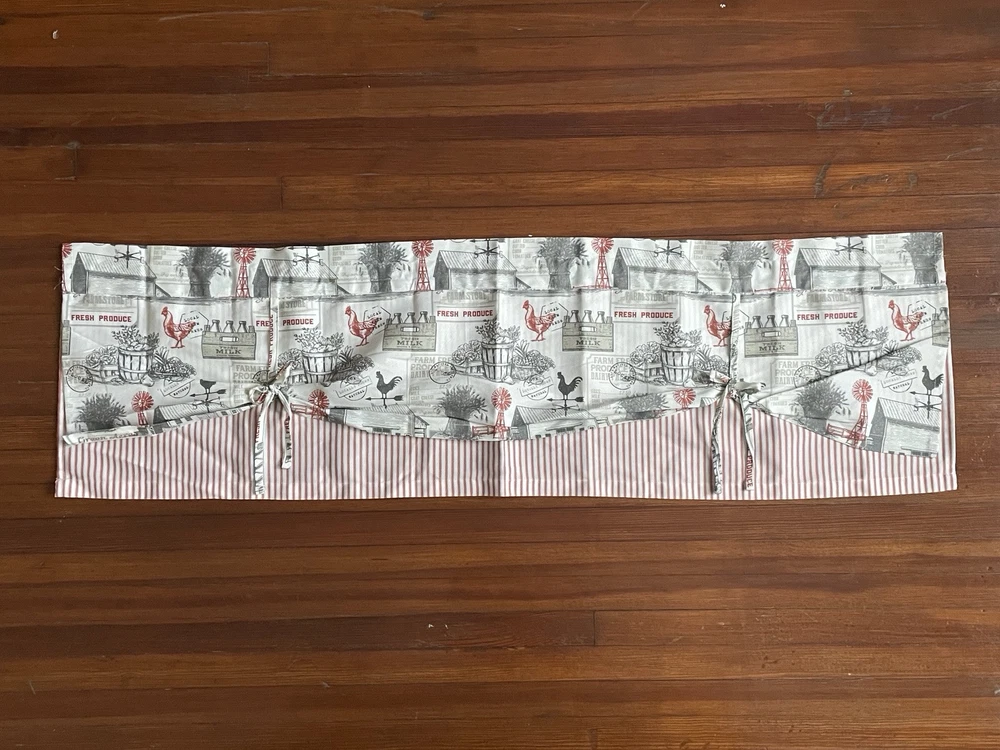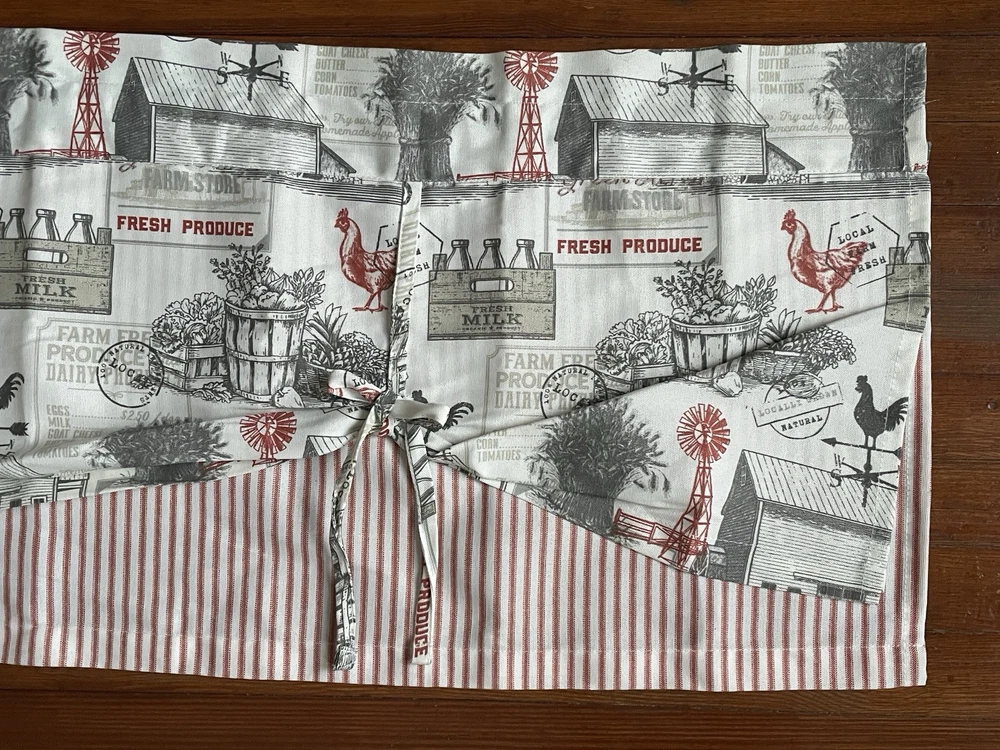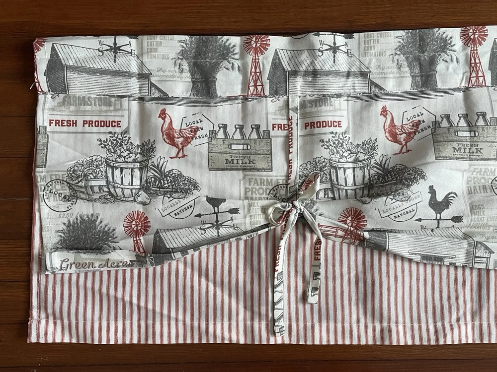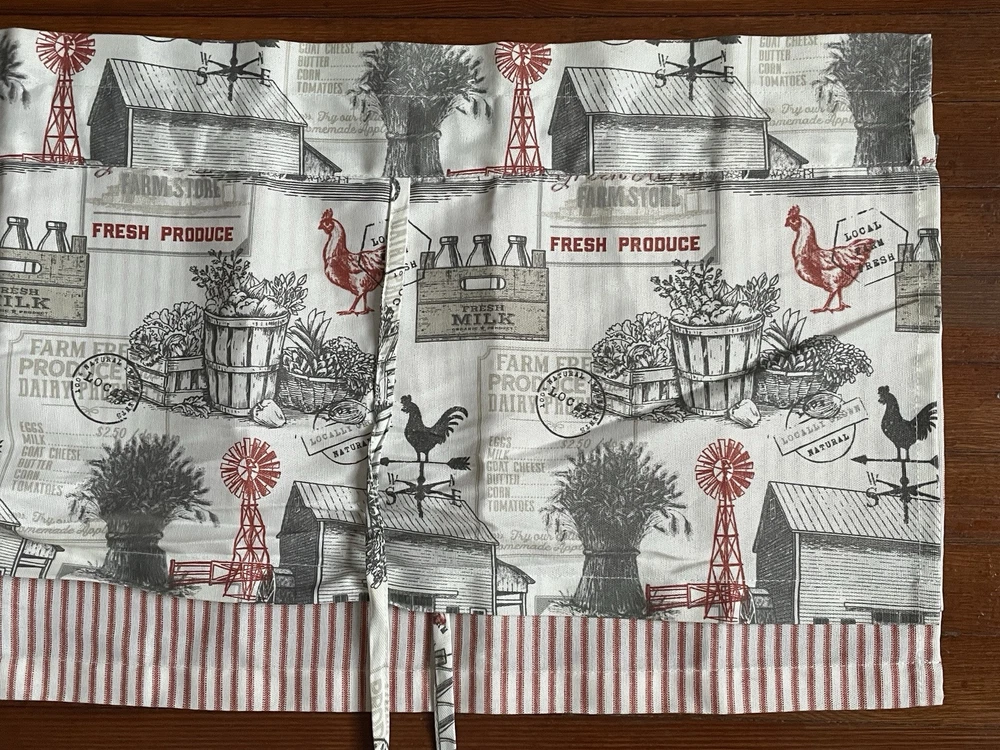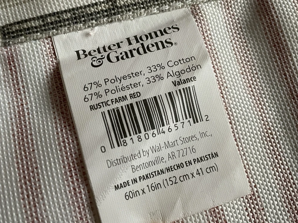 Better Homes & Gardens Farmhouse Double Pattern Tie Valance Window Treatments There are (8) panels available in this listing. Each panel is 60” x 16”. Rod pocket hanger. Excellent pre-owned condition.