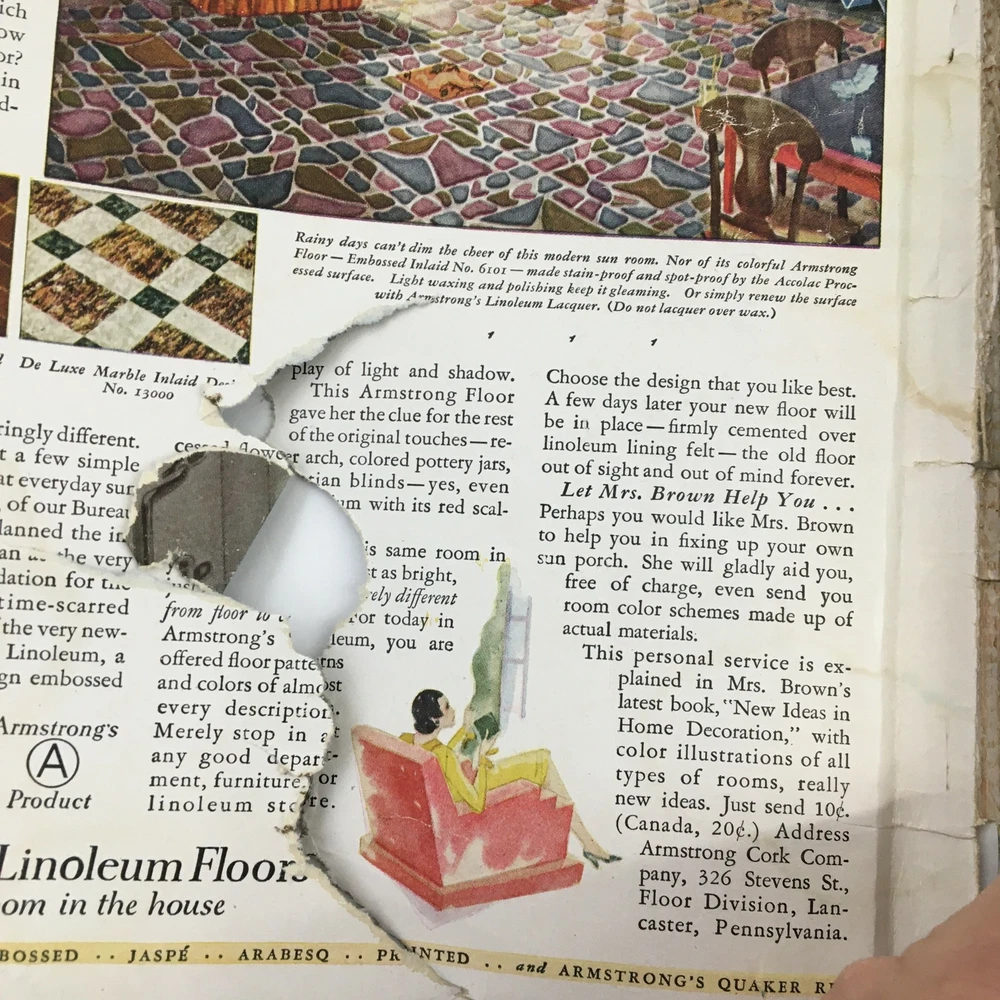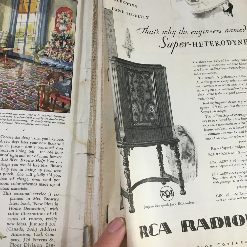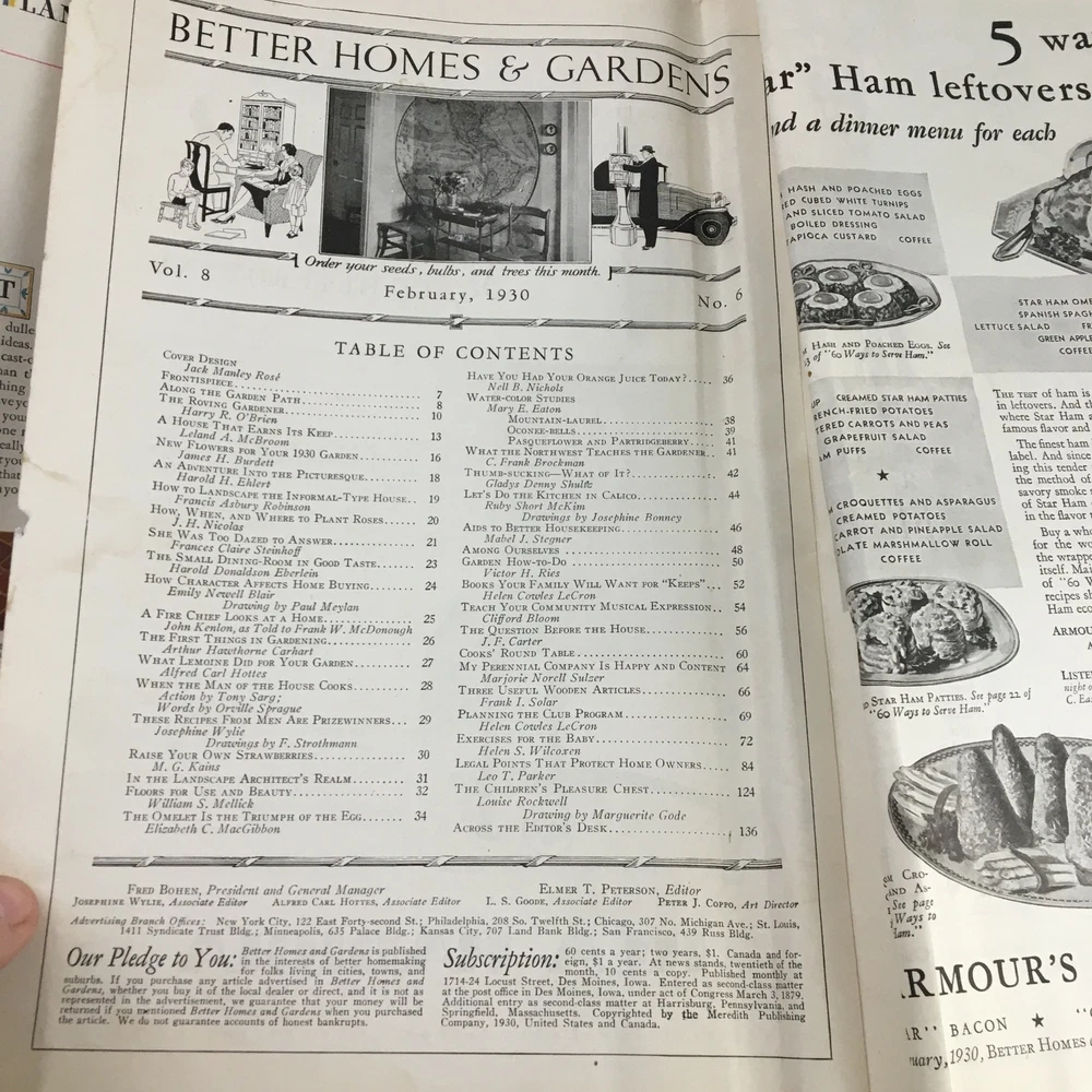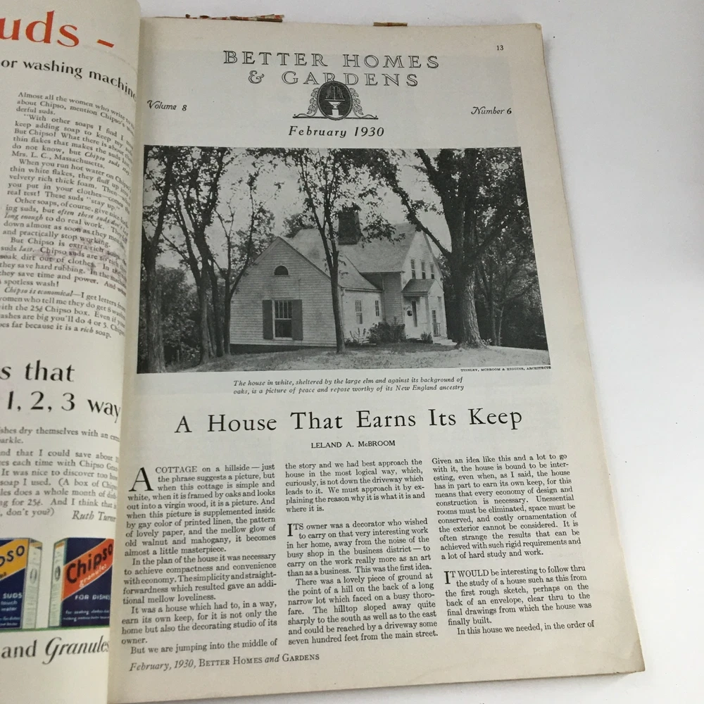 Better Homes & Gardens February 1930 A House That Earns Its Keep at New England Acceptable condition. Has address label on back. Magazine has wear. See photos. Comes with plastic protective covering. Front & back cover off. Some marks. See photos. Wear on binding.