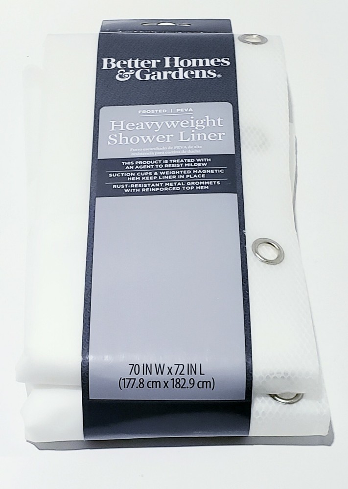 Better Homes & Gardens Clear HeavyWeight Shower Liner 70x72. Condition is "New". Shipped with USPS Priority Mail. We combine shipping on all orders to same address. If it doesn't appear to be correct, please contact us, as we charge only what we have to pay for shipping there are no added fees on shipping and sometimes weights or dimensions can be off slightly when things combine so we will be happy to adjust shipping if you are overcharged for combined shipments. Please view our other items, we have a little bit of everything. Refunds are given within 30 days but our refund policy does not include changing your mind on an item. Please ask as many questions as necessary before you purchase so we may be sure you get the item you are looking for. We appreciate you viewing our auction and thank you in advance for your purchase. Any purchases in bulk (more than 10 items) may qualify for additional discounts and creation of a custom listing. Please contact us if you are a wholesale buyer.