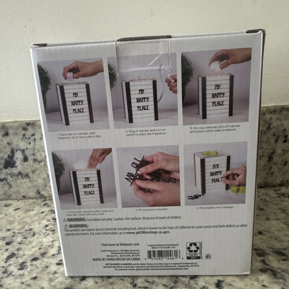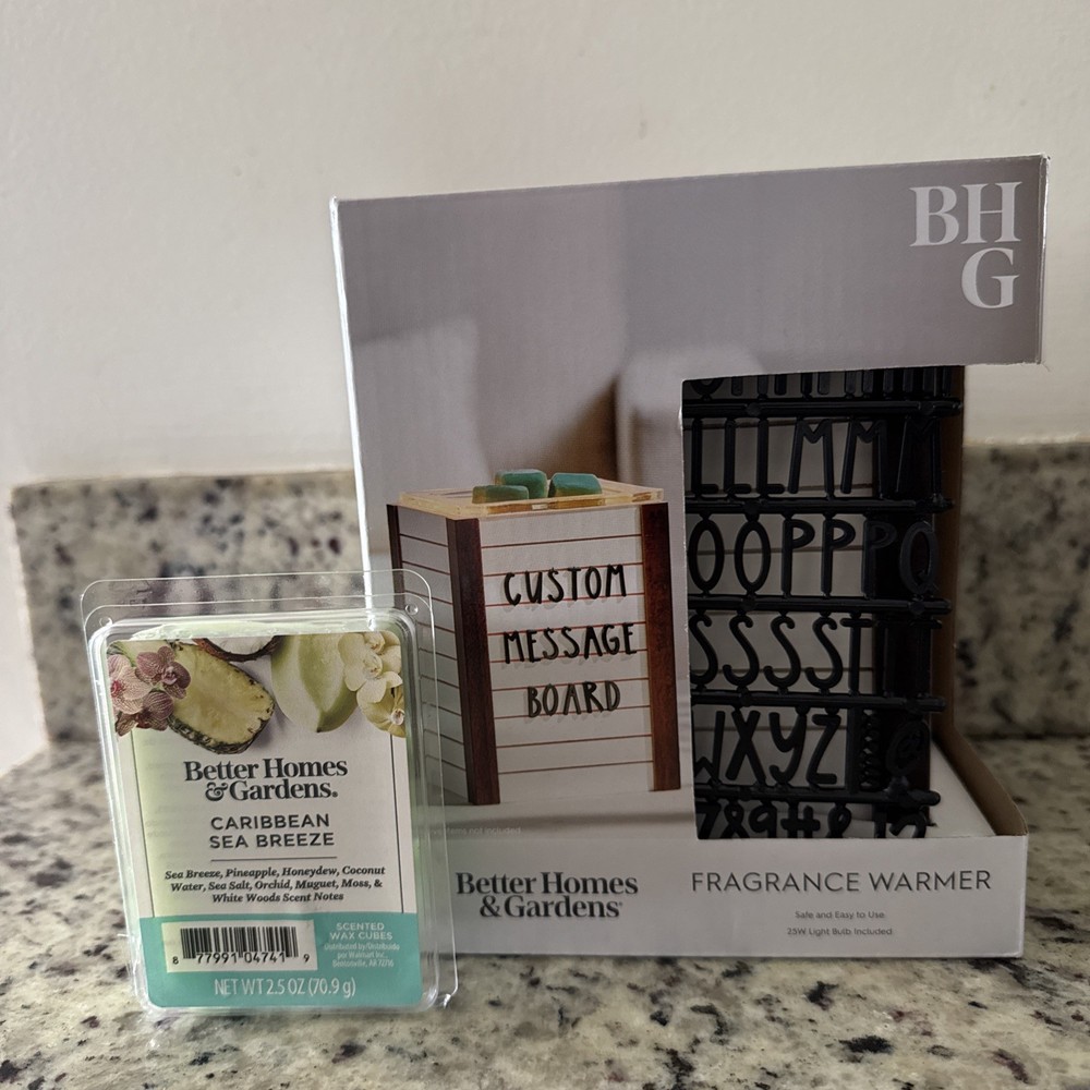 The Better Homes & Gardens Full Size Warmer is a fragrance warmer with an assembled product weight of 2.24 lb and dimensions of 5.75 x 5.75 x 7.00 inches. It features a multicolor design and a letterboard display. This product is perfect for creating a cozy and inviting atmosphere in any room by adding a touch of fragrance and style. The warmer is easy to use and adds a touch of elegance to any space with its charming design. Free Caribbean Sea Breeze scented wax cubes included. Set of 6. No refunds No returns