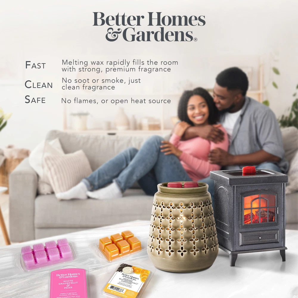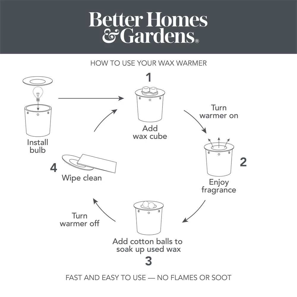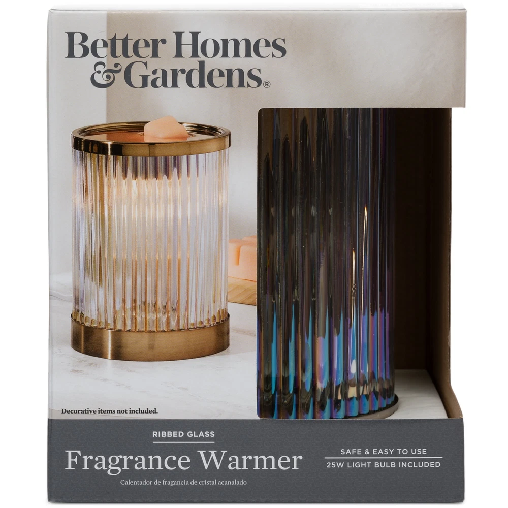 The Ribbed Glass Fragrance Warmer brings style and functionality to your home. The Ribbed Glass warmer is made of a decorative ribbed glass with brushed antique gold on top and bottom. It gently melts scented wax, releasing aromatic scents that fill an entire room with inviting warmth. It produces a soft glow from inside when plugged in. The soft 25W light provides a relaxing, decorative atmosphere and melts your choice of fragrance wax cubes. The fragrance wax warmer creates a relaxing atmosphere while giving you a safe heat source to melt your choice of fragrance wax melts (sold separately). The use of an electric light makes this a safe way to heat your fragrance with no soot or residue. This Better Homes & Gardens Ribbed Glass Fragrance Warmer is perfect for adding the right amount of ambience and fragrance to your space. On Dec 12, 2024 at 05:37:24 PST, seller added the following information: