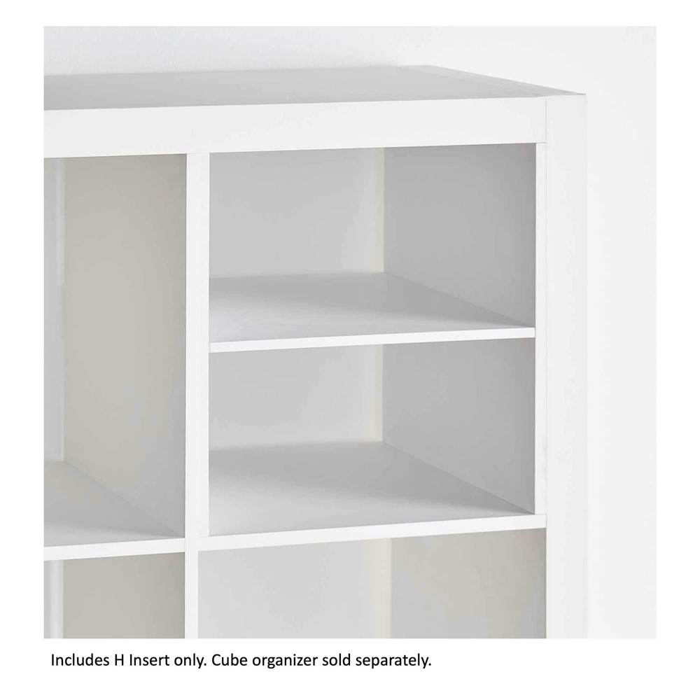 Unlock the full potential of cube storage with the Better Homes & Gardens H Shelf Cube Organizer Insert and the rest of Better Homes & Gardens’ line of cube organizer accessories and inserts. The H divider is designed to fit seamlessly into Better Homes & Gardens Cube Storage Organizer (sold separately) compartments. Effortlessly divide a cube shelf, horizontally or vertically, into two functional sections, to make the most of every inch of available space. Divides cube shelves into two separate sections for various items such as books, baskets, toys, clothes, office supplies, and more, allowing you to keep everything neatly in place Can be used to divide a cube compartment vertically or horizontally Designed to be used in Better Homes & Gardens Cube Organizers (sold separately) Shelf can easily support up to 4.4 lbs Materials: particle board Easy to assemble and install (Phillips head screwdriver required) Finishes available: White Texture (BH5336278612059) & Tobacco Oak (BH5336278612060) Package size: 17.91" x 1.5" x 14.69" (6.82 lbs) Assembled weight: 5.81 lbs Assembled dimensions: 12.91" W x 15.12" D x 12.91" H