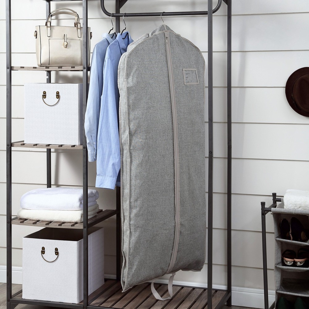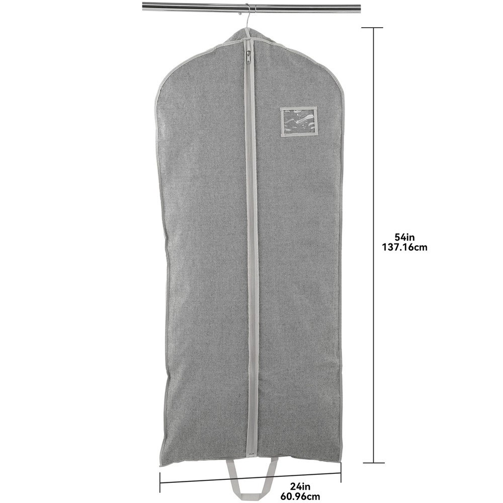 Whether you're traveling or just storing your clothes for the season, the Better Homes & Gardens Hanging Zipper Garment Bag makes it easy to protect your clothing. Made of durable gray fabric, this garment bag comes with a sturdy metal hook that can be hung on any closet storage rod, door, or vehicle hitch. It has a zipper closure that runs the entire length of the bag, making it easy to store and retrieve your clothing without excessive wrinkling or folding, a carry strap at the bottom for easy transport, and a travel window that prominently displays your information for easy identification. On May 19, 2025 at 18:29:30 PDT, seller added the following information: On Jun 5, 2025 at 02:38:16 PDT, seller added the following information: