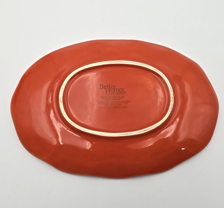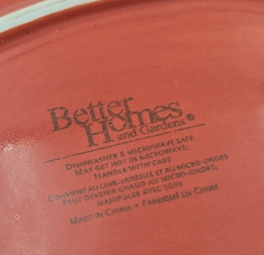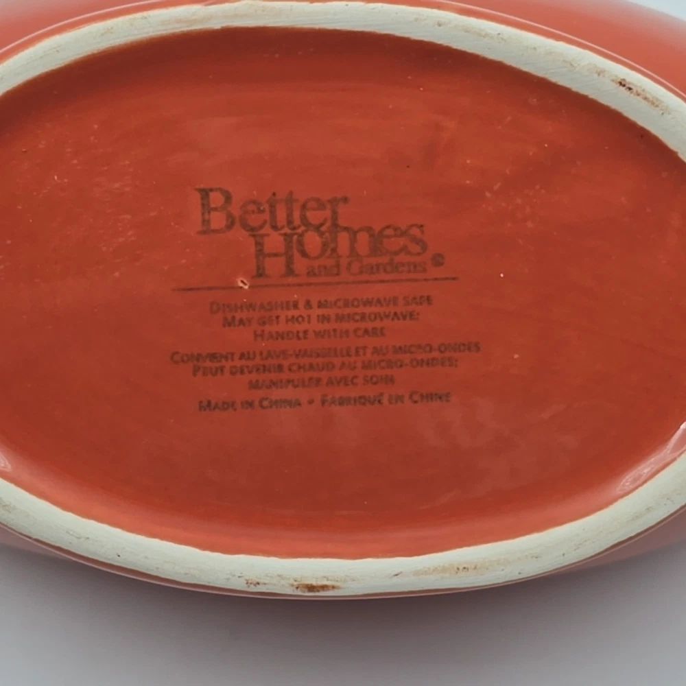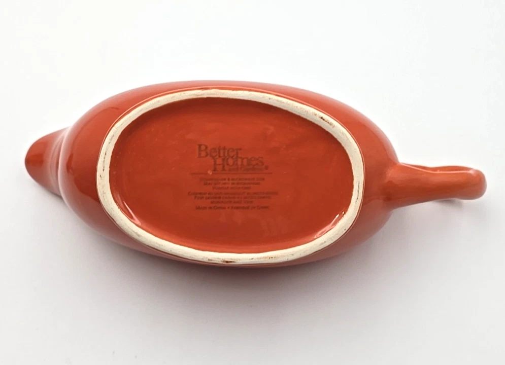 What is included; Better Homes & Gardens Harvest Dried Peach Gravy Boat & Underplate w/ Ladle Approx. Dimensions: Plate: 9" x 6 1/4" Bowl: 9 3/8" long x 3 3/8" wide x 3 3/4" tall Ladle: 7" long Condition: These items are in good used condition. No chips or cracks noticed. There is some finish rubbed off of the ladle handle. See photos. Please review all pictures as they are part of the description and condition.