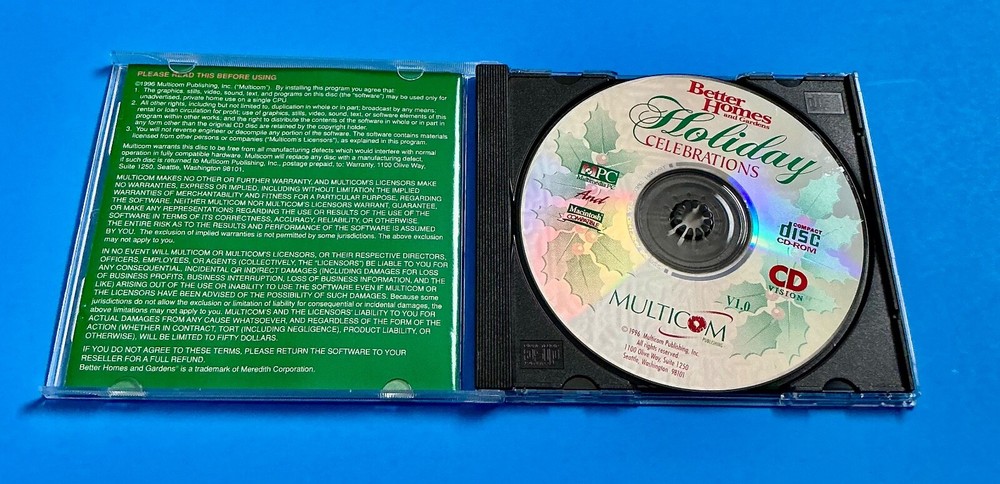 This CD ROM disc is a must-have for anyone interested in holiday celebrations, gardens, or cookbooks. With over 100 projects, this Better Homes & Gardens Holiday Celebrations CD ROM is perfect for young adults and adults alike. The nonfiction narrative type and English language make it accessible to a wide audience, while the special attributes of the CD-ROM format add to its uniqueness. The book title is Better Homes & Gardens Holiday Celebrations, and it is part of the Better Homes Gardens book series. Published by Multicom Publishers in the United States, this vintage CD ROM disc is from the 1990s era and features a variety of topics including holidays, gardens, and cookbook recipes. The CD-ROM format makes it easy to use and adds to its value as a reference tool. LIKE NEW NO SCRATCH ON DISC