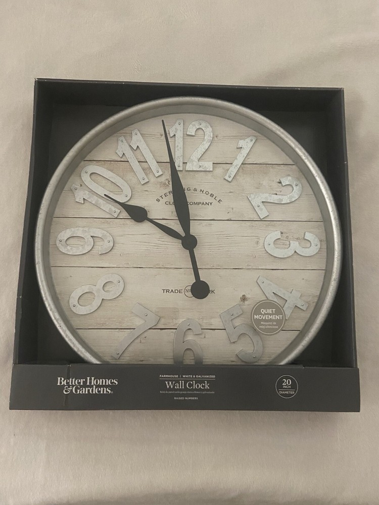 Better Homes & Gardens Indoor 20" White and Galvanized Raised Wall Clock...