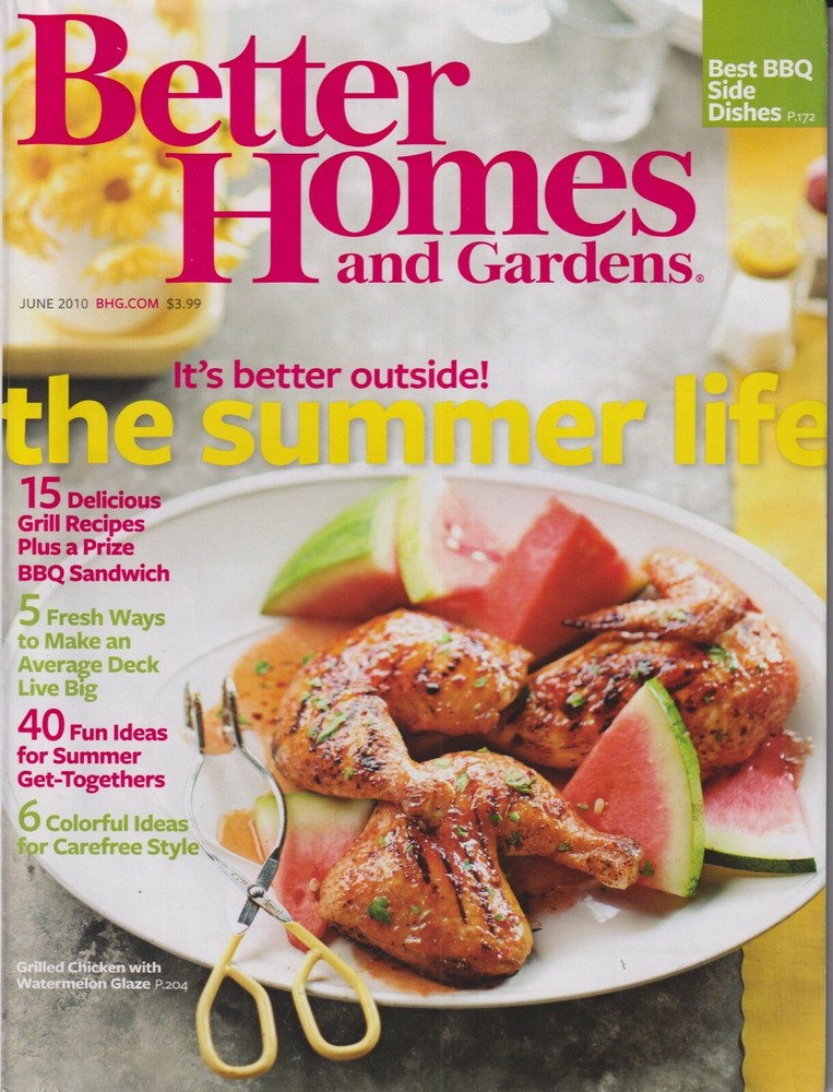 Single issue magazine ideas and improvement projects for your home and garden plus recipes and entertaining ideas. This issue features: Better Homes & Gardens June 2010 It's Better Outside! The Summer Life ; 15 Delicious Grill Recipes Plus a Prize BBQ Sandwich; 5 Fresh Ways to Make an Average Deck Live Big; 40 Fun Ideas For Summer Get-Togethers; 6 Colorful Ideas for Carefree Style; Best BBQ Side Dishes; and more. Purchase and give back: Ten percent (10%) of this sale will go to a designated monthly nonprofit organization. For more information, see Shop’s details. If you are looking for a back issue and don’t see it listed, please contact us. We have over 10,000 back issues available. Magazines with advertisements cannot be shipped “Media Mail”. Over l lb. is shipped US Priority Mail. Under 1 lb is shipped US First Class Mail. Foreign is shipped via Ebay's Global Shipping Program. All magazine are packed in plastic and shipped in a stay flat mailer. Check out our entire catalog on eBay: https://stores.ebay.com/indigomistbooks