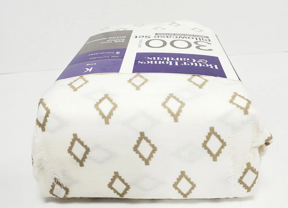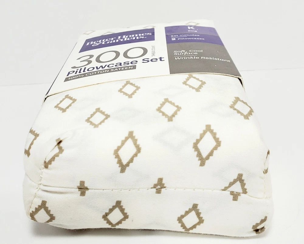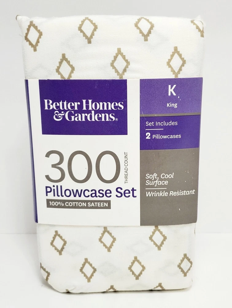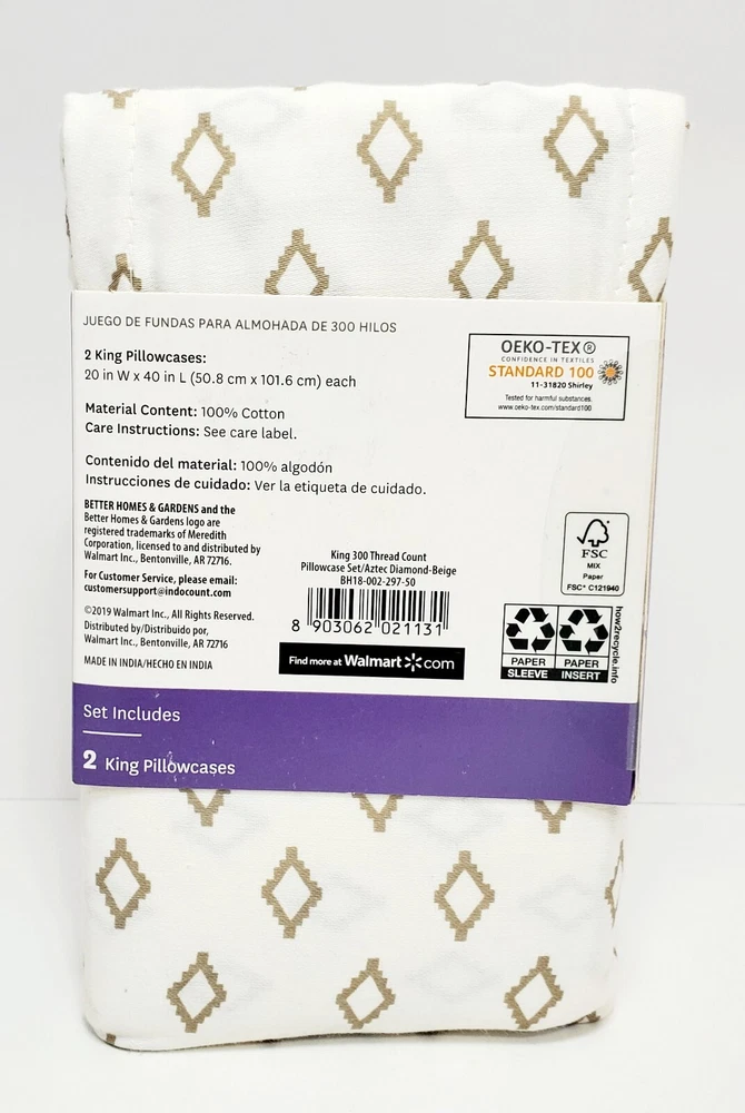 This Better Homes & Garden King Pillowcase set is a perfect addition to your bedding collection. It is made from 100% Cotton Sateen and has a 300 thread count to provide the best of comfort and durability. The elegant Aztec Diamond Beige color & pattern will give your bedroom a fresh and vibrant look. The 2 pillowcases are rectangular in shape with a size of 20 x 40 inches each and can be used for teens, adults, and kids. The machine washable pillowcase is easy to care for, and its STANDARD 100 by OEKO-TEX certification ensures that it is free from harmful substances. It is also designed to provide a cooling effect, which makes it ideal for use in all seasons. Made in India, the pillowcase set comes with labels and certifications that guarantee its quality and performance. I ship within 24 hours after payment is received Mon. - Fri. I do combine shipping on multiple items purchased. Please feel free to contact me if you have any questions or concerns. Thank you for looking at my listings.