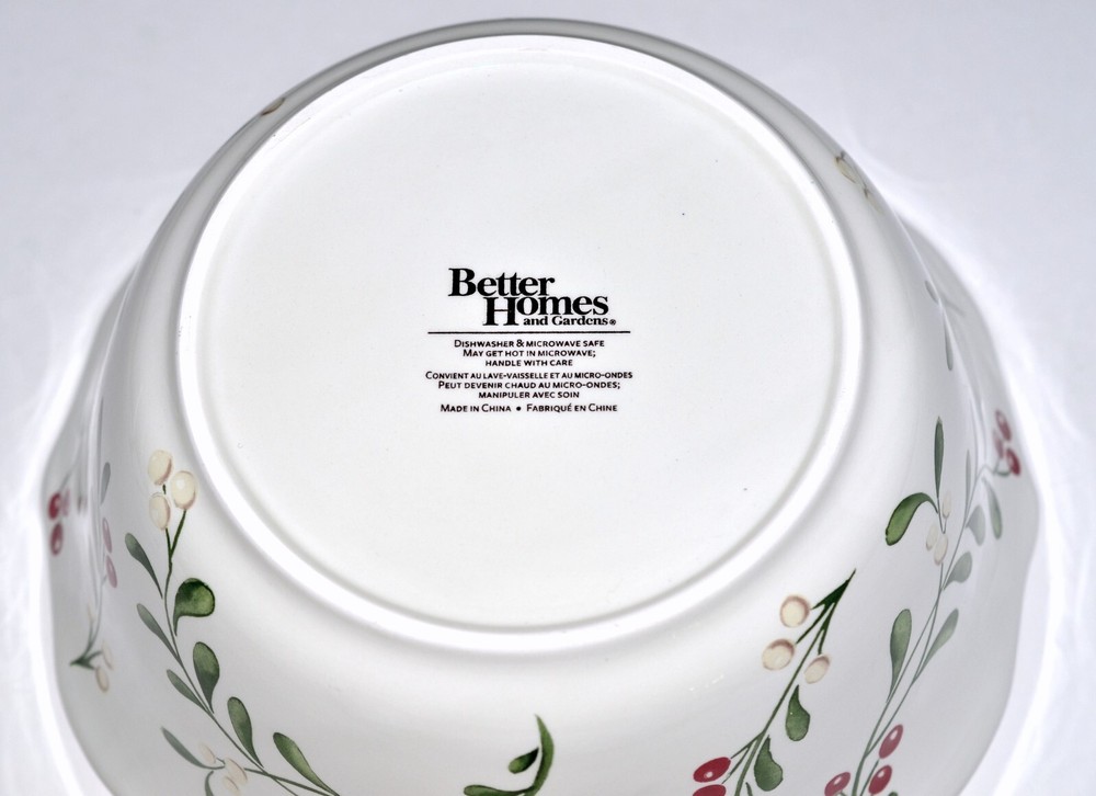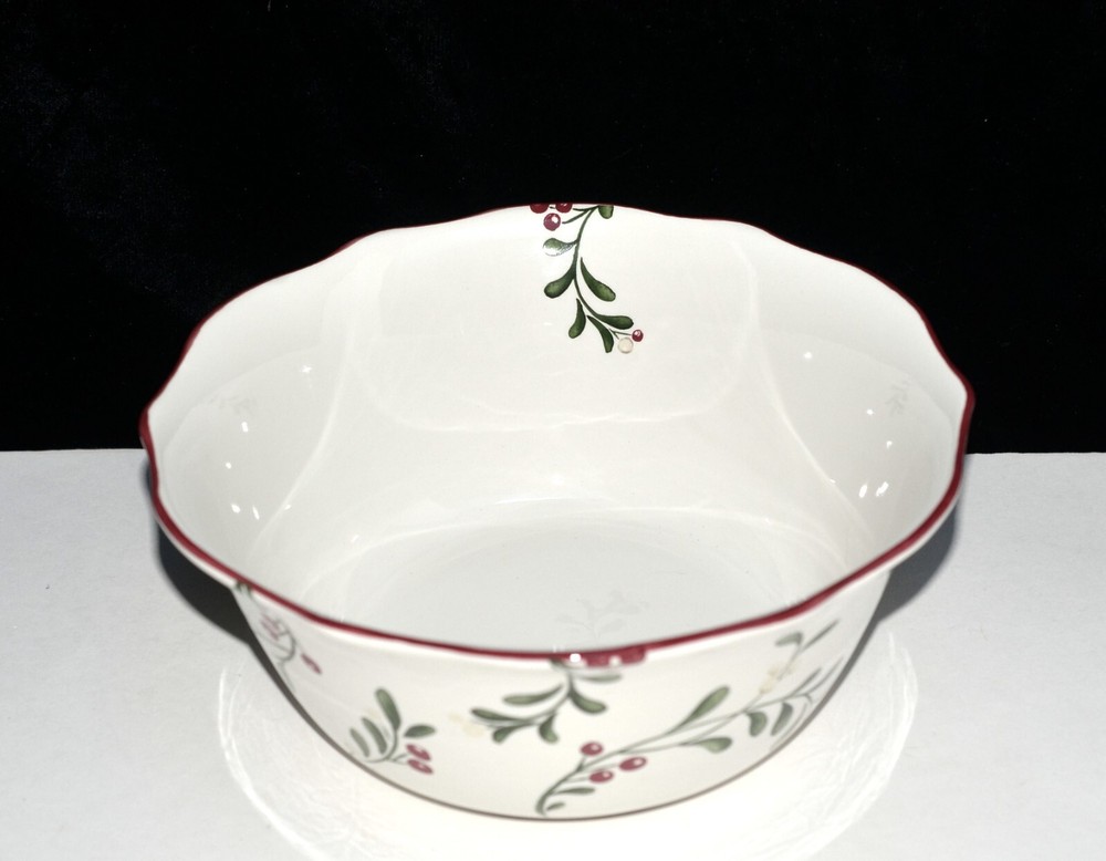 Better Homes and Gardens, Mistletoe - One large serving bowl w a mistletoe (leaves, berries and flowers) design - 9 1/2" x 4 1/8" - Excellent condition, used only a time or two..... no chips, cracks or scratches. SHIPPING: Your package will be sent within one business day of your payment. Your items will receive superior packaging to ensure a safe arrival.