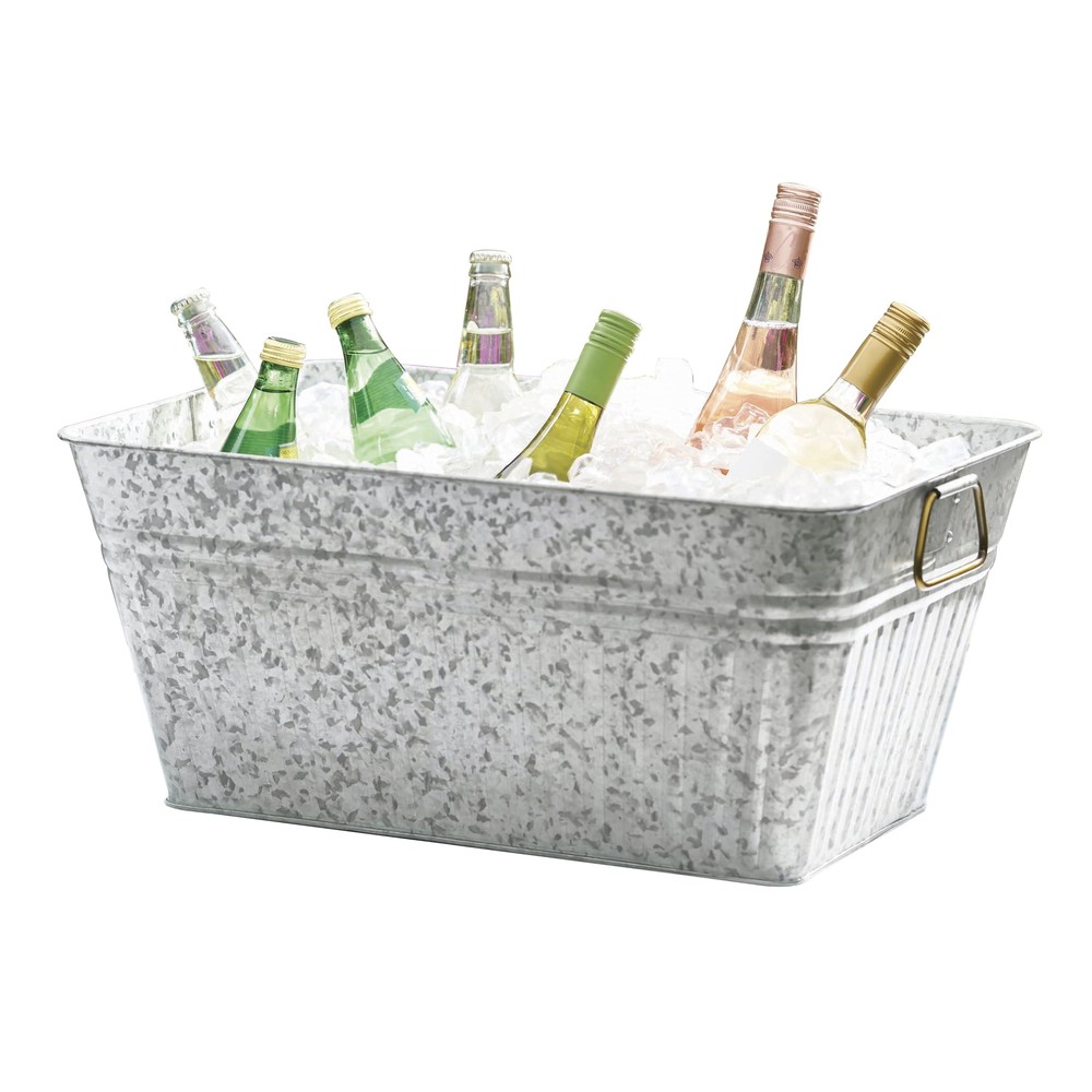 Ensure you always have ice cold beverages on hand using this chic Better Homes & Gardens Rectangle Tub BH28-056-099-29 in Galvanized Steel. Measures 22 IN L x 15 IN W x 10 IN H. Featuring contemporary yet perfectly casual design, this steel tub is the perfect drink container when filled with ample ice. Ideal for garden parties, park hangouts or a day at the beach, the Better Homes and Gardens Rectangle Tub in Galvanized Steel boasts a thoughtful galvanized finish to prevent rusting, and boasts 2 durable and streamlined handles for easy carrying. Provide for your guests in with style and convenience using this Better Homes and Gardens Galvanized Rectangle Tub. Rectangle tub BH28-056-099-29 measures 22 IN L x 15 IN W x 10 IN H The ideal drink container to keep your beverages cold - suitable for both indoor and outdoor use Made from unique and durable galvanized steel to prevent rusting Designed with sturdy handles on 2 sides for easy carrying Hand wash only with non-abrasive materials Sure to coordinate with any indoor and outdoor servingware, and other Better Homes & Gardens Galvanized Steel pieces - can also be used as a beverage dispenser stand when flipped over. Perfect for a wide variety of uses - great for garden and backyard parties, picnics, beach days, sporting events and much more