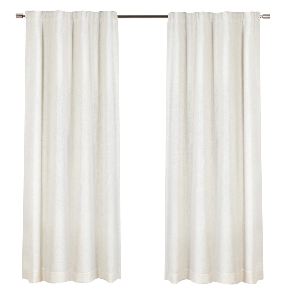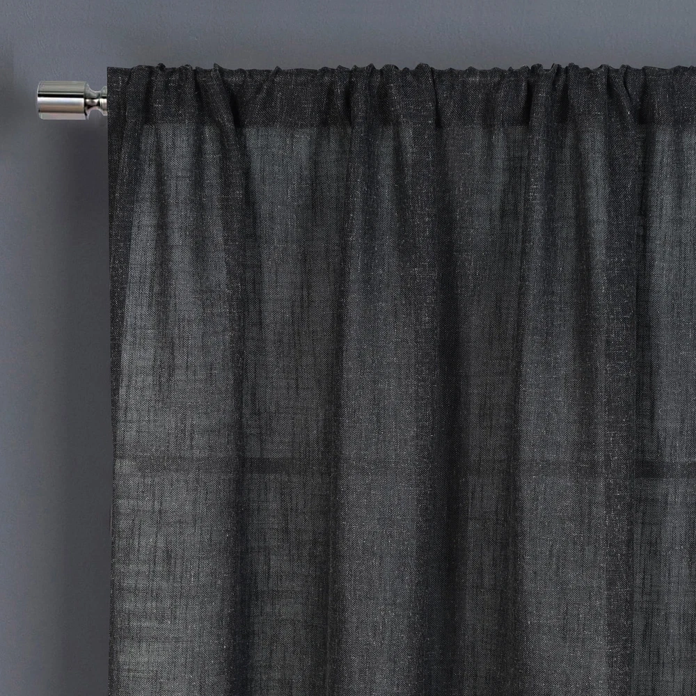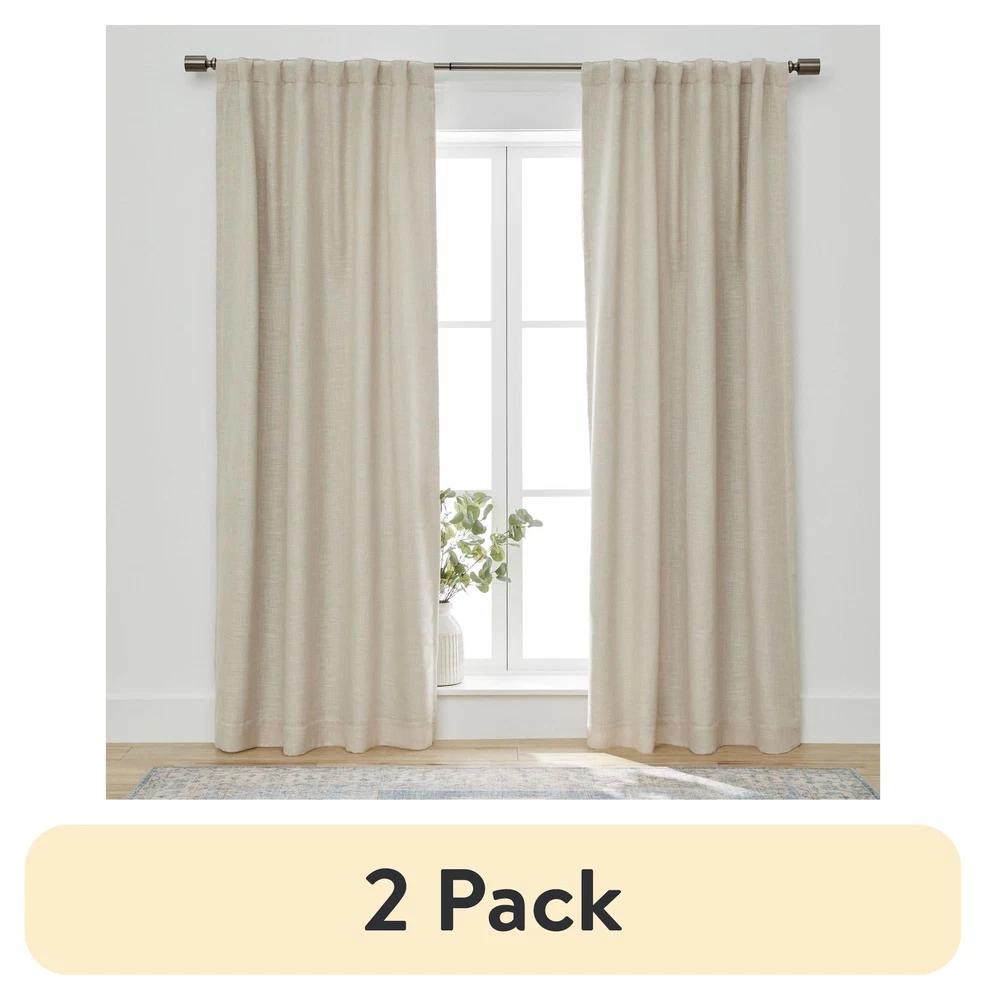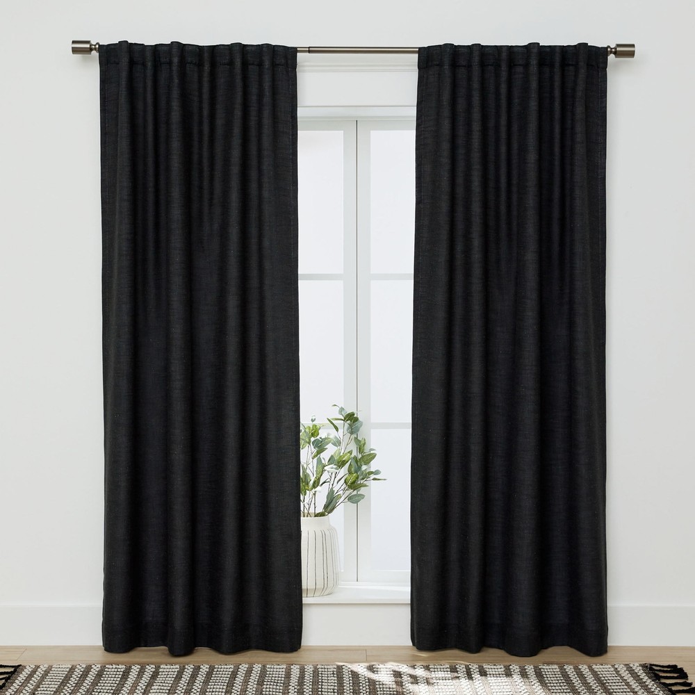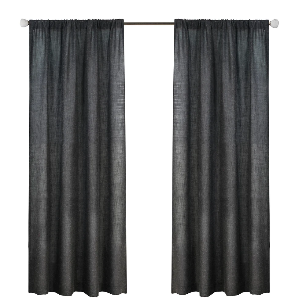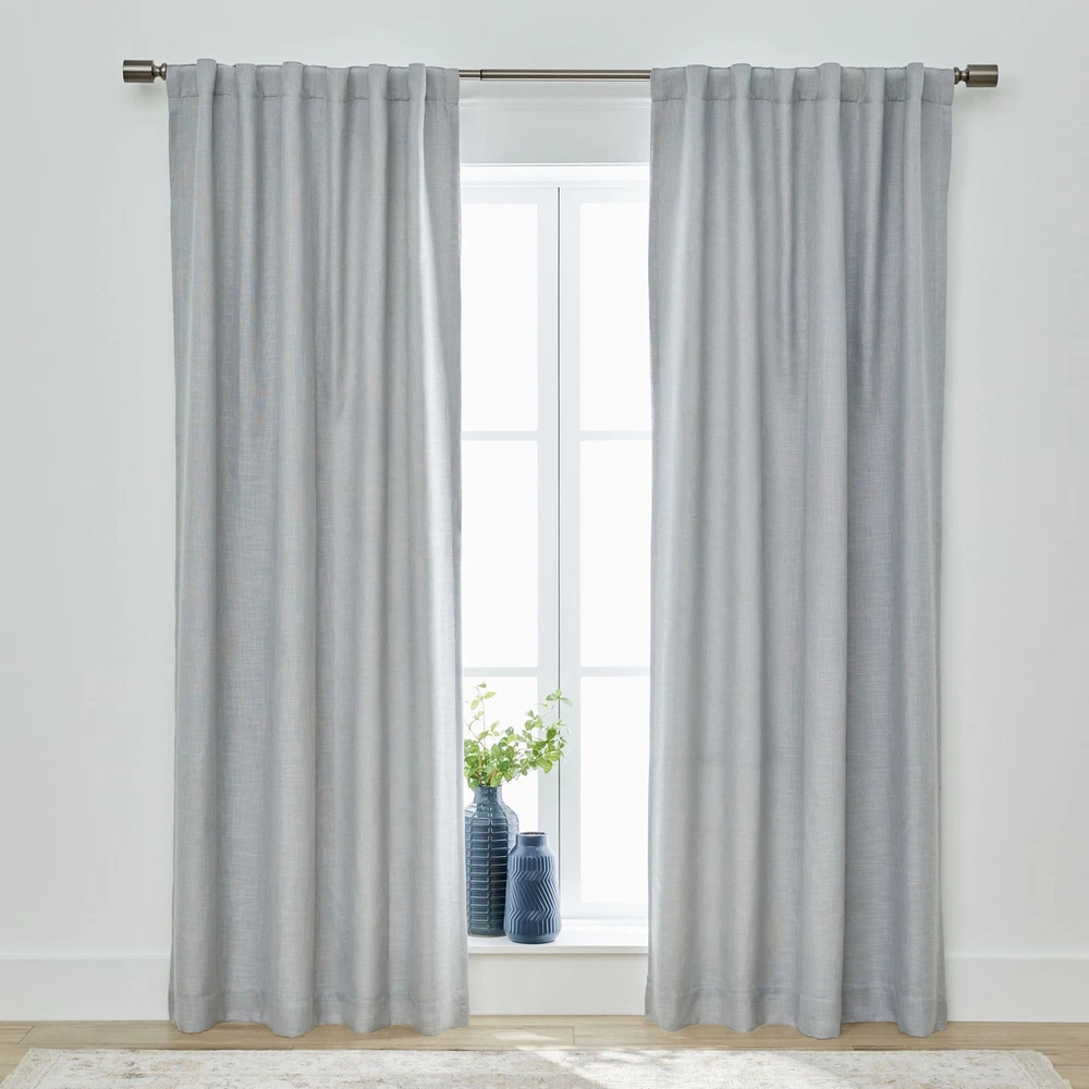 Fashion meets function with Better Homes & Gardens Linen-Blend Curtain Panel. A chic and dramatic look for any window in your home, this curtain has a blackout lining to help block out sun, noise and provide privacy and insulation. The rod-pocket top allows for effortless, fuss-free installation, the simple design easily integrates with the décor in any room and the panel is machine washable so maintaining that fresh look is a breeze. Includes: 1 curtain panel Dimensions: 50” W x 84” L Hanging Style: Rod pocket for easy hanging and styling Light Filtration: Blackout and noise reducing Material: 90% Polyester10% Linen Care: Machine washable Country of Origin: Imported Why You’ll Love It: Blackout properties filter out the sun; perfect for sleeping in or mid-day movie marathons. Style Tip: For windows you open often, choose sill length. For a casual look, let the fabric fall a few inches below the window. For a tailored or dramatic look, choose floor length curtains to make your windows a focal point Linen Blend Blackout Curtain Panel from Better Homes & Gardens