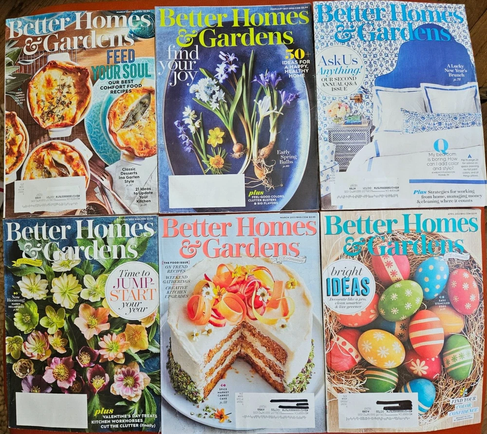 Lot of 6 Better Homes & Gardens Magazine Jan, Feb, Mar 2021 & Jan/Feb, Mar, April 2022. Delicious recipes, spring planting ideas and more. USPS Flate Rate Shipping Envelope at $10.40 Thanks for lookin...