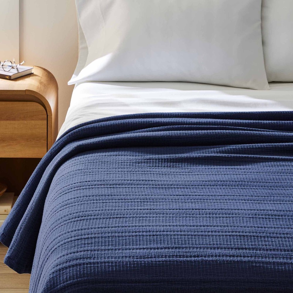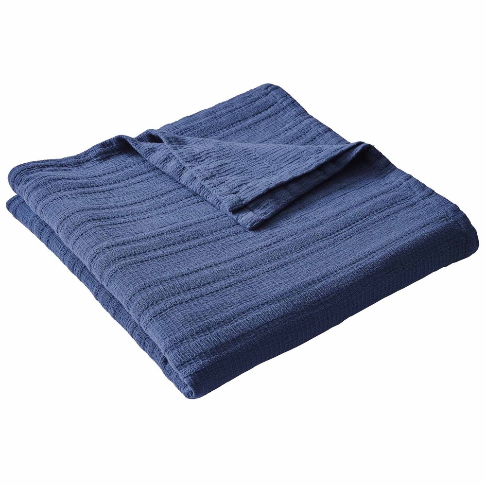 This Better Homes & Gardens Cotton Bed Blanket in Washed Indigo for a King-sized bed offers an everyday luxury that complements any living space. Whether you use it to add extra warmth to your bed or drape it over a chair for a stylish touch, this blanket combines timeless fashion with a classic touch. Made from 100% cotton, it provides breathable comfort that feels light in the summer and layers perfectly with your comforter in the winter for added warmth. The blanket is exceptionally soft and has the perfect weight for year-round enjoyment. It is also machine washable and easy to maintain. Available in Washed Indigo, Soft Silver, and Arctic White, with Full/Queen and King options, this blanket coordinates with other Better Homes & Gardens bedding, allowing you to choose the perfect options for your home. 100% Cotton Bed Blanket King: 108''x 92'' Machine wash for easy care and maintenance