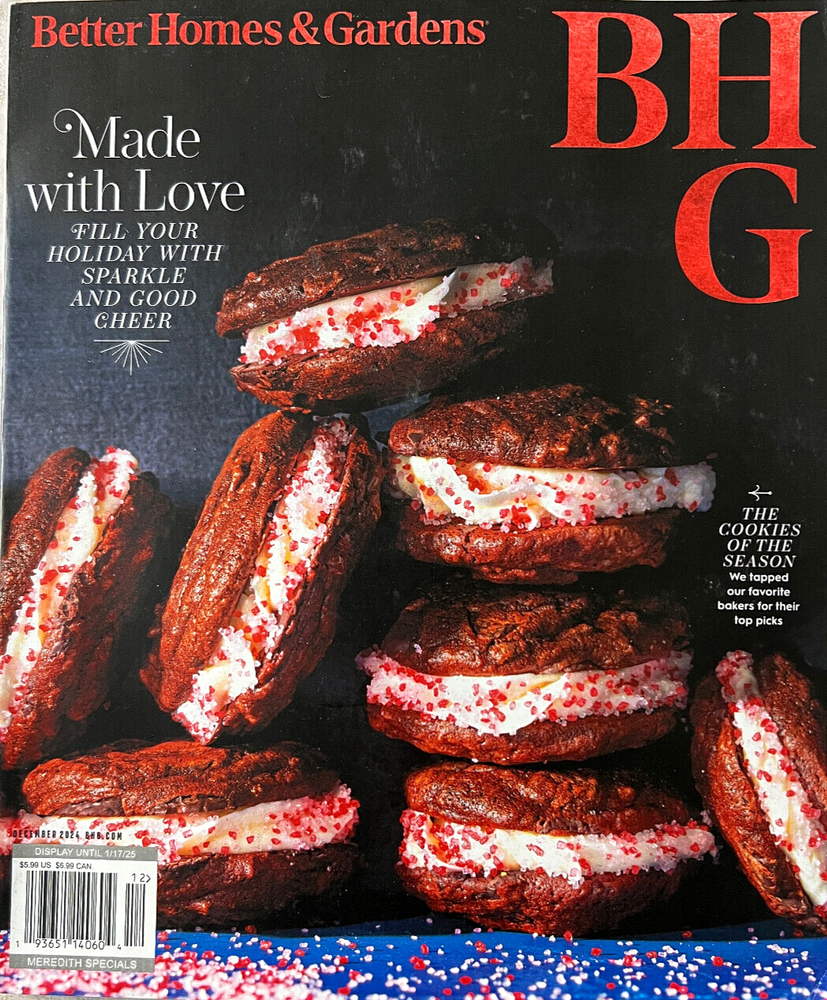 Better Homes & Gardens Magazine December 2024 "Made with Love Issue" The Cookie of The Season & Holiday Decor & More! Indulge yourself in the latest issue of Better Homes & Garden's "Made with Love" Magazine. This monthly publication is a treasure trove of ideas for designing your home, planning your holidays, and preparing delicious meals. The December 2024 edition is packed with exciting content on these topics and more. With a focus on food and decor, this physical magazine is a must-have for anyone looking to spruce up their living space and create memorable meals. Written in English, it is perfect for those who want to stay inspired and creative. NEW MAGAZINE NEWSSTAND COPY With Normal Shelf/Storage Wear Note: Magazine is new, how ever may show signs of shelf wear. “Shelf wear is a form of damage that can develop on items removed and replaced on a shelf. It can also refer to damage caused by rough handling by staff members and customers. Shelf wear can sometimes be caused by improper storage in the stock room or on the shelves“ The package is shipped from Minnesota so we are usually charged a distance premium to most destinations by the shipping services over which we have no control. We do not make money on shipping. We appreciate a five star feedback for the five star product and service we strive to deliver. THANK YOU! We leave feedback after feedback has been left for us by the purchaser.