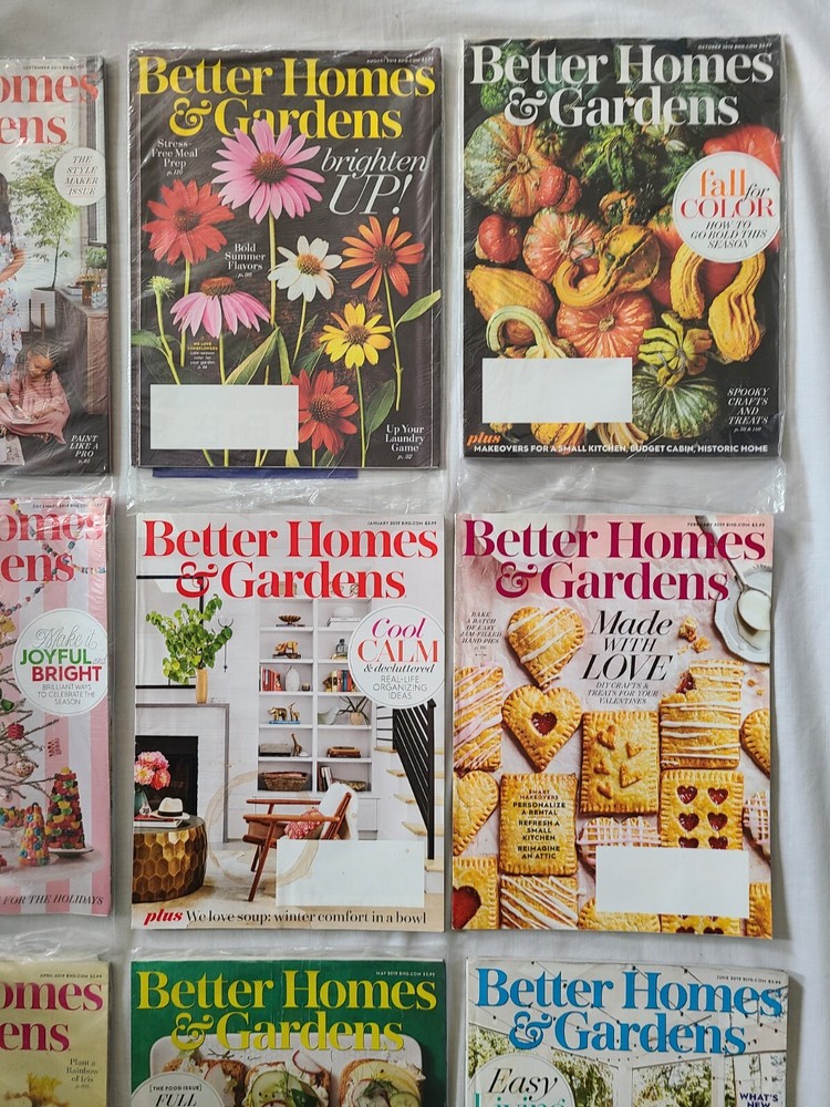 Better Homes & Gardens Magazines 2018-2019 12 issues, some NEW IN PACKAGE 2018 July New in package August New in package September New in package October New in package November December New in package 2019 January Ring from coffee cup shown in last photo February March New in package April New in package May New in package June Please see photos for condition NOTE: COLOR MAY VARY Actual color may differ slightly due to various factors including the way different monitors and screens display colors or light conditions when image was taken.
