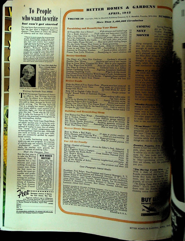 Better Homes & Gardens Magazine April 1942 WWII Food Decoration Great item Make Papergoy your Trusted eBay Source for Ephemera. Please add us as a favorite seller and be sure to visit our store- with over 20,000 items...and growing! Track Page Views With Auctiva's Counter