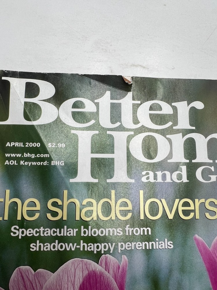 Better Homes & Gardens Magazine April 2000 Issue - The Shade Lovers *Torn Page* 1 00% Genuine U S A S E L L E R Check out my feedback! FAST, PROFESSIONAL SHIPPING! Shipping: Orders placed on Monday and Tuesday before 5 AM MST Will Ship Same Day. Orders placed Wednesday – Friday before 6 AM MST Will Ship Same Day. Tracking is provided on ALL Orders UPS Next Day Air may be available for orders over $250 at an extra cost. Please inquire for pricing prior to purchase. We always try to use the fastest standard shipping available for all of our items through UPS, FedEx and USPS. For our customers who can’t use USPS please let us know after your purchase so we can choose a separate shipping option. Returns : ALL returns are accepted if returned within 30 days. Money Back or exchange guaranteed. NO Restocking Fees. For YOU, we constantly strive to find ways to improve our performance. For our customers who can not use USPS please let us know after your purchase so we can choose a separate shipping option. 1 00% Genuine U S A S E L L E R Check out my feedback! FAST, PROFESSIONAL SHIPPING! Shipping: · Orders placed on Monday and Tuesday before 5 AM MST Will Ship Same Day. excluding government holidays. · Orders placed Wednesday to Friday before 6 AM MST Will Ship Same Day. Tracking is provided on ALL Orders UPS Next Day Air may be available for orders over $500 at an extra cost. Please inquire for pricing prior to purchase. We always try to use the fastest standard shipping available for all of our items through UPS, FedEx and USPS. For our customers who can not use USPS please let us know after your purchase so we can choose a separate shipping option. Returns : ALL returns are accepted if returned within 30 days. Money Back or exchange guaranteed. NO Restocking Fees.