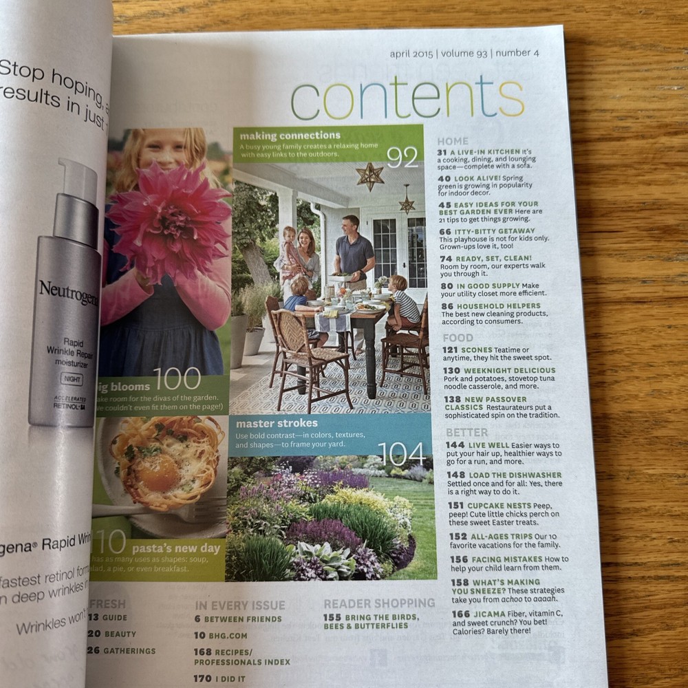 This issue of Better Homes & Gardens Magazine from April 2015 is a rare find for those interested in home and garden topics. Filled with beautiful ideas and tips, this monthly publication is a must-read for anyone looking to spruce up their living space. The edition focuses on gardens and outdoor projects, making it an excellent addition to any home library. The publication month, year, frequency, name, and genre are all included in the title, making it easy to search for and identify. This magazine is perfect for those interested in home and garden topics, and it's sure to provide plenty of inspiration for your next project. Don't miss out on this out-of-print edition.