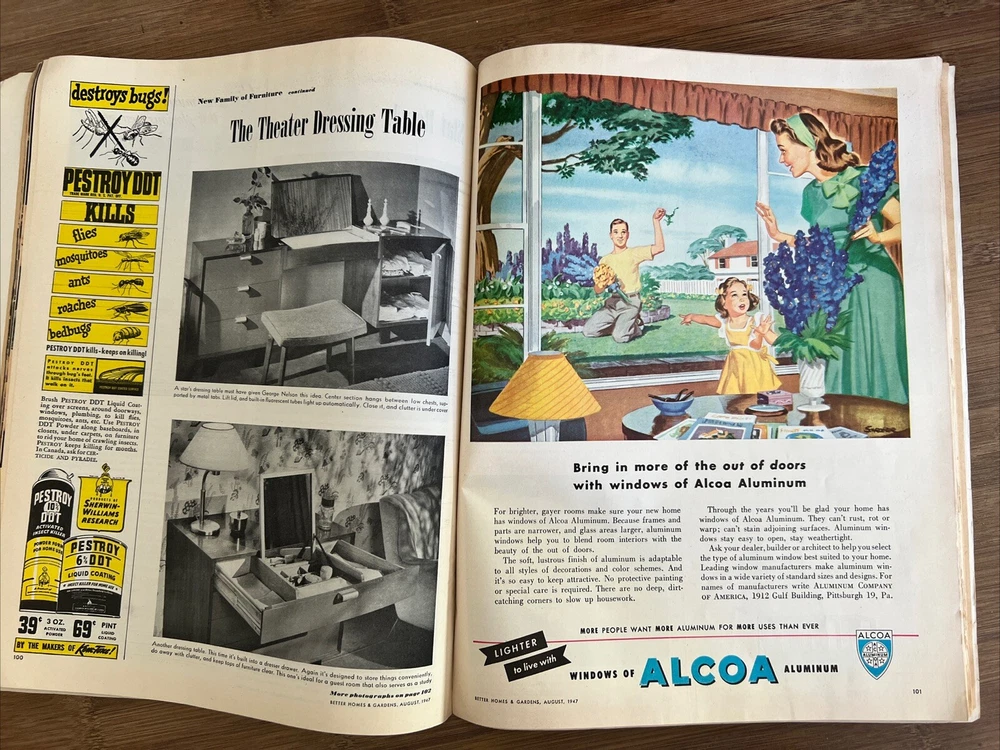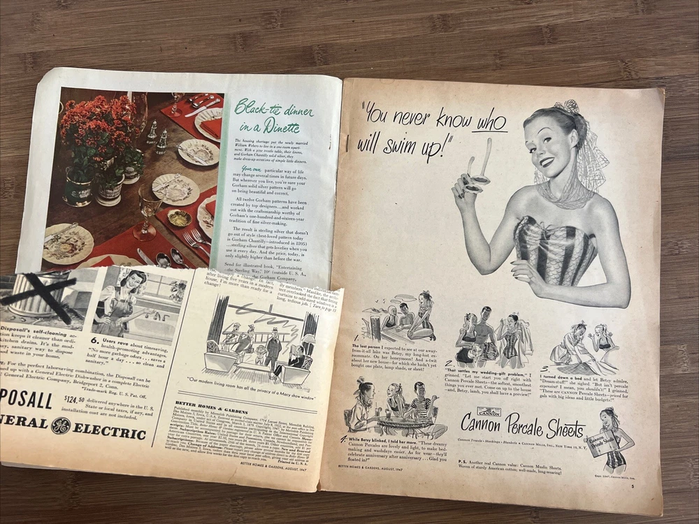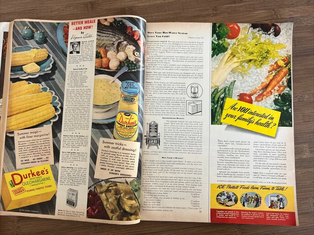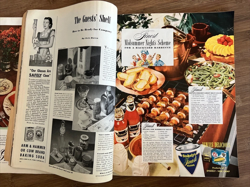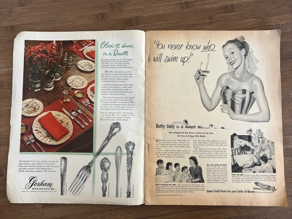 This vintage issue of Better Homes & Gardens magazine from August 1947 is a treasure trove of ideas for home decor, design, and recipes. The publication is filled with charming ads and articles that capture the essence of mid-century style. Overall acceptable vintage condition with some wear consistent with age and use. Some page discoloration and some bent pages. Please see pictures!