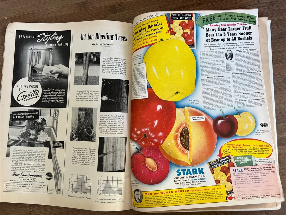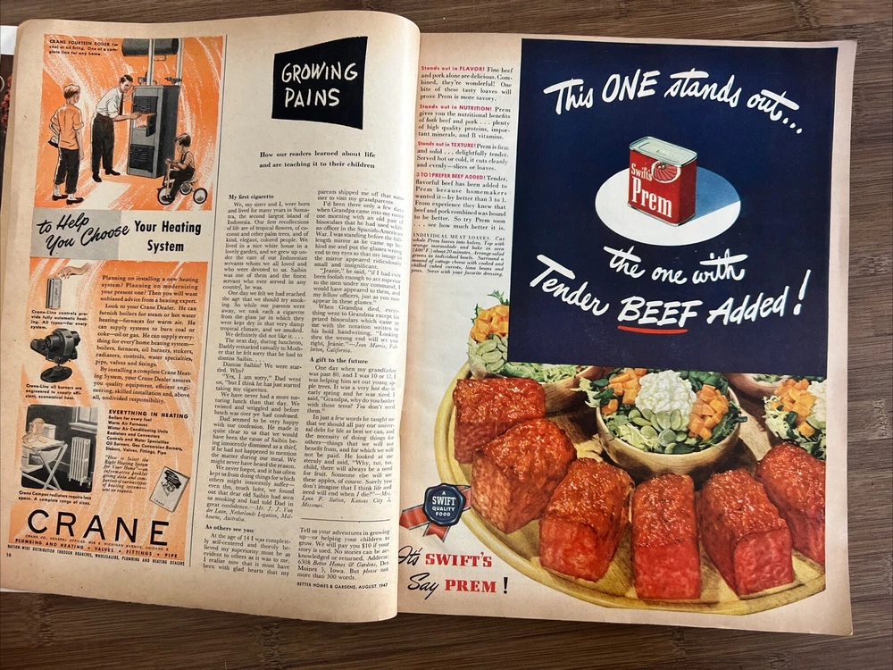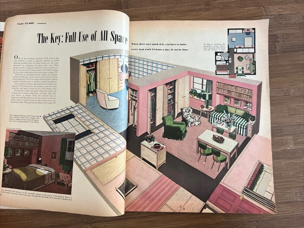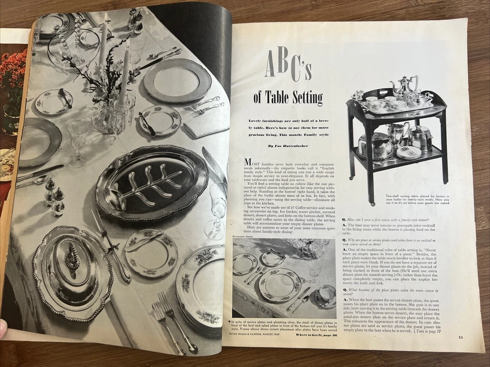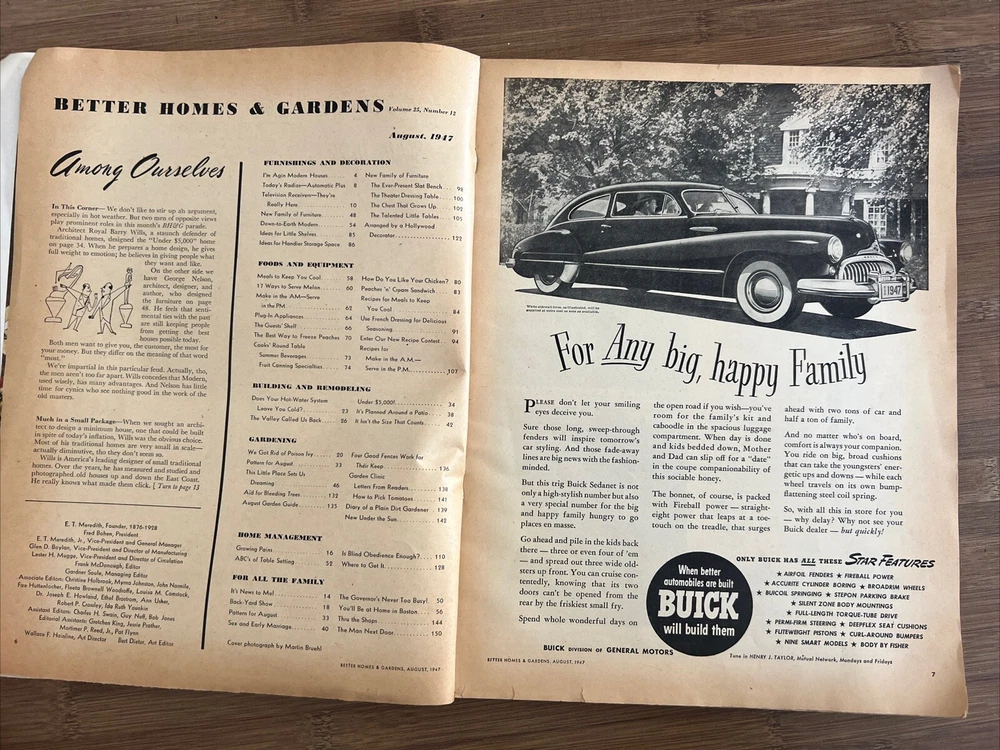 This vintage issue of Better Homes & Gardens magazine from August 1947 is a treasure trove of ideas for home decor, design, and recipes. The publication is filled with charming ads and articles that capture the essence of mid-century style. Overall acceptable vintage condition with some wear consistent with age and use. Some page discoloration and some bent pages. Please see pictures!