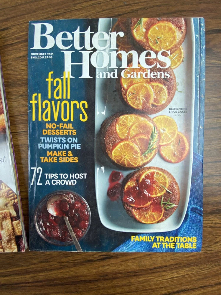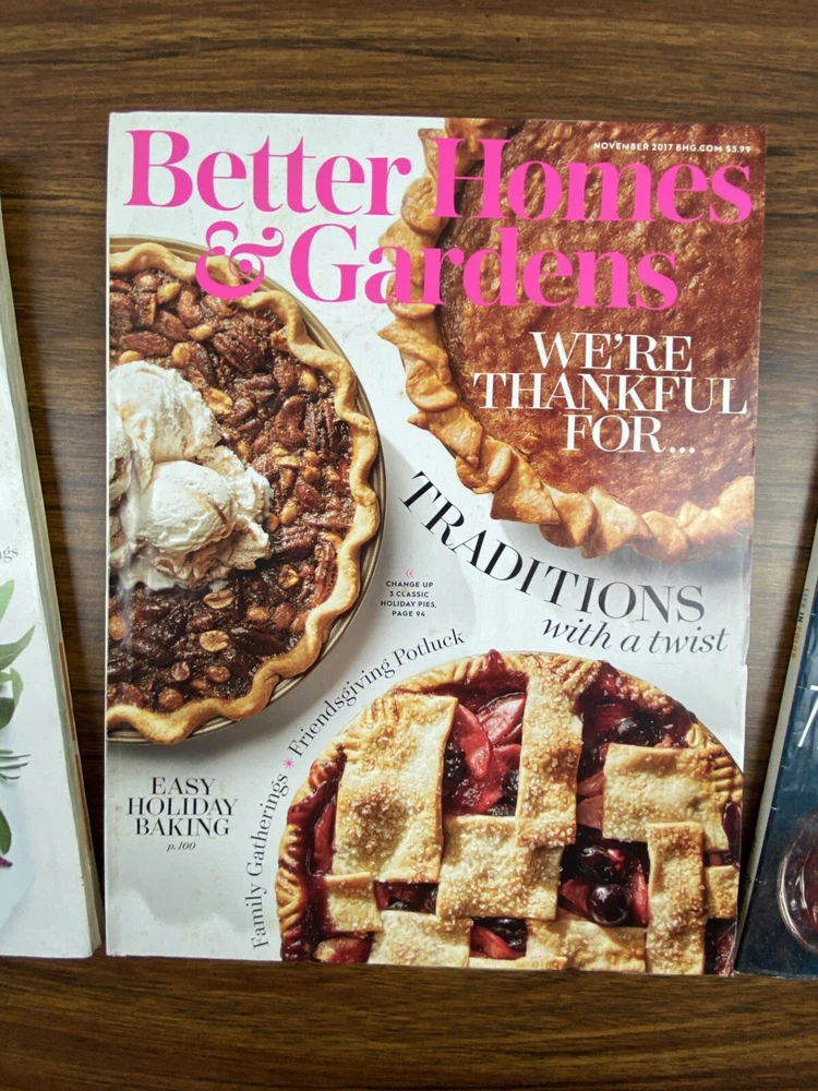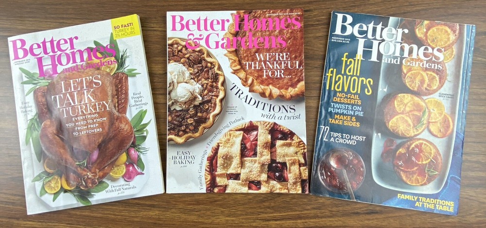 A bundle of Better Homes & Gardens magazines from November 2015, 2016, and 2017. The magazines focus on topics related to home & garden, published by Better Homes & Gardens in English language. This magazine bundle offers insights, tips, and inspiration for various aspects of home living and gardening.